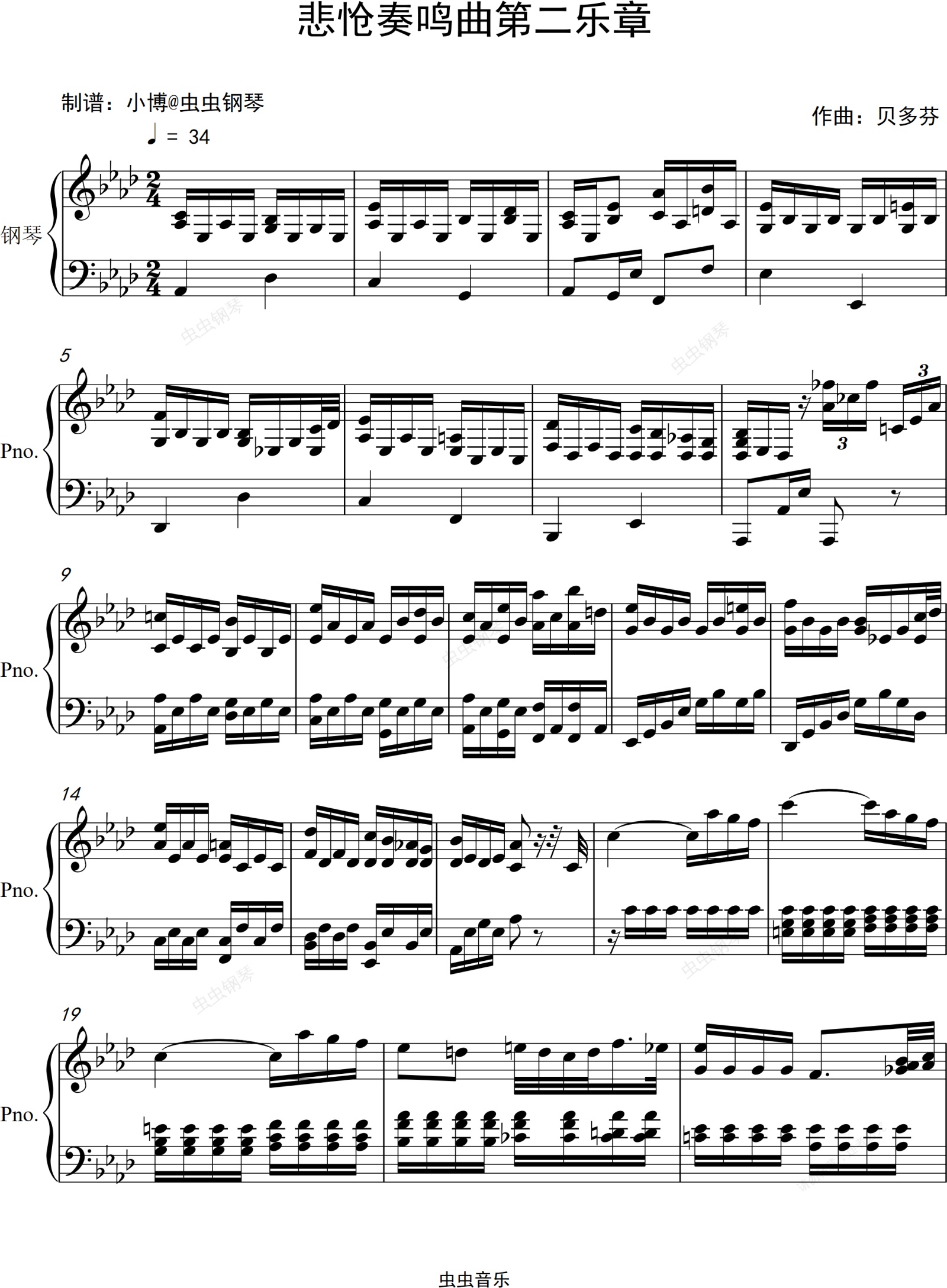 钢琴谱:悲怆奏鸣曲第二乐章-贝多芬