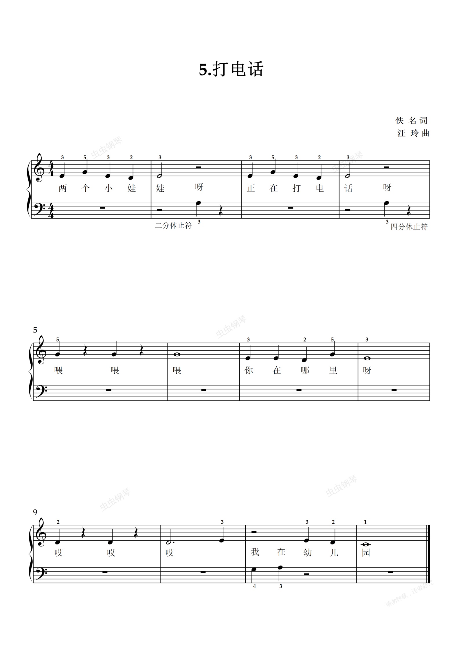 钢琴谱:5.打电话