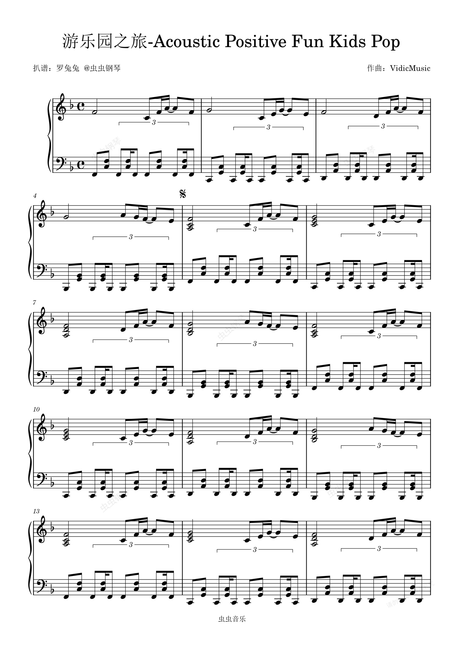 钢琴谱:游乐园之旅-Acoustic Positive Fun Kids Pop