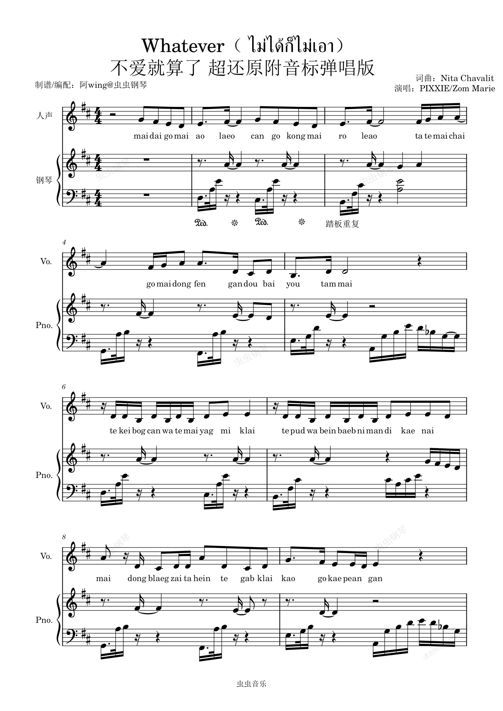 钢琴谱:Whatever不爱就算了 超火泰语BGM(高还原钢琴弹唱附音标)