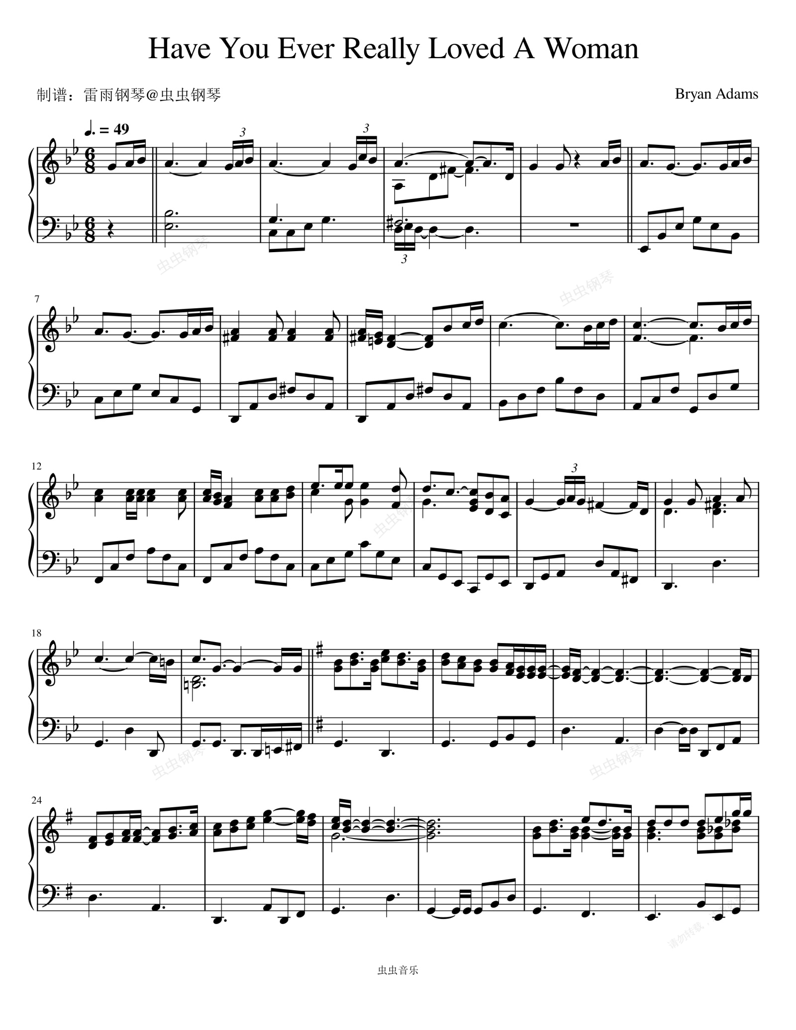 钢琴谱:Have You Ever Really Loved A Woman - Bryan Adams