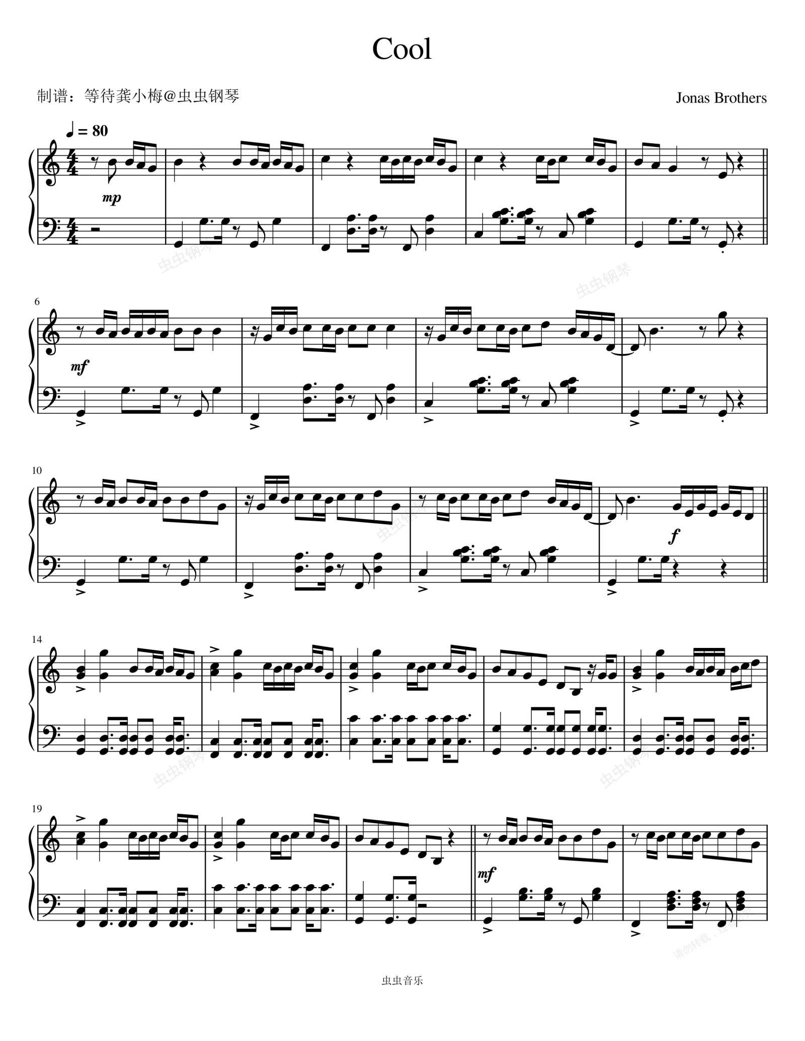 钢琴谱:Cool - Jonas Brothers (乔纳斯兄弟)
