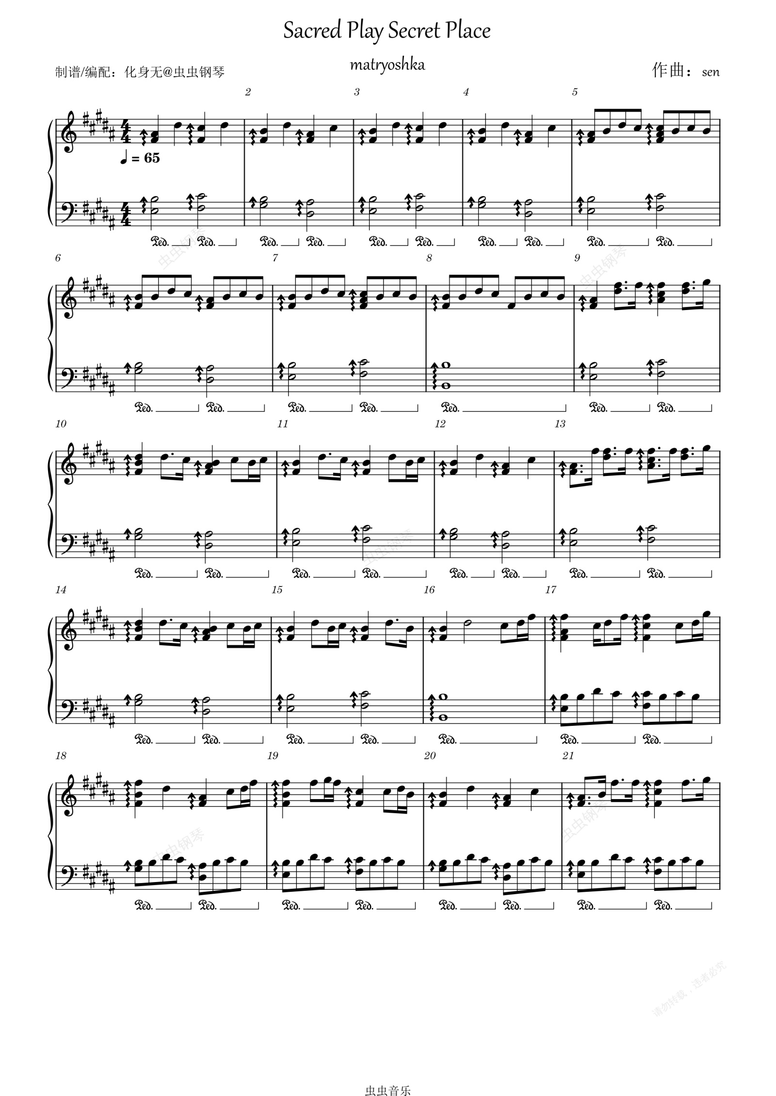 钢琴谱:Sacred Play Secret Place 化身无编配 原调独奏版