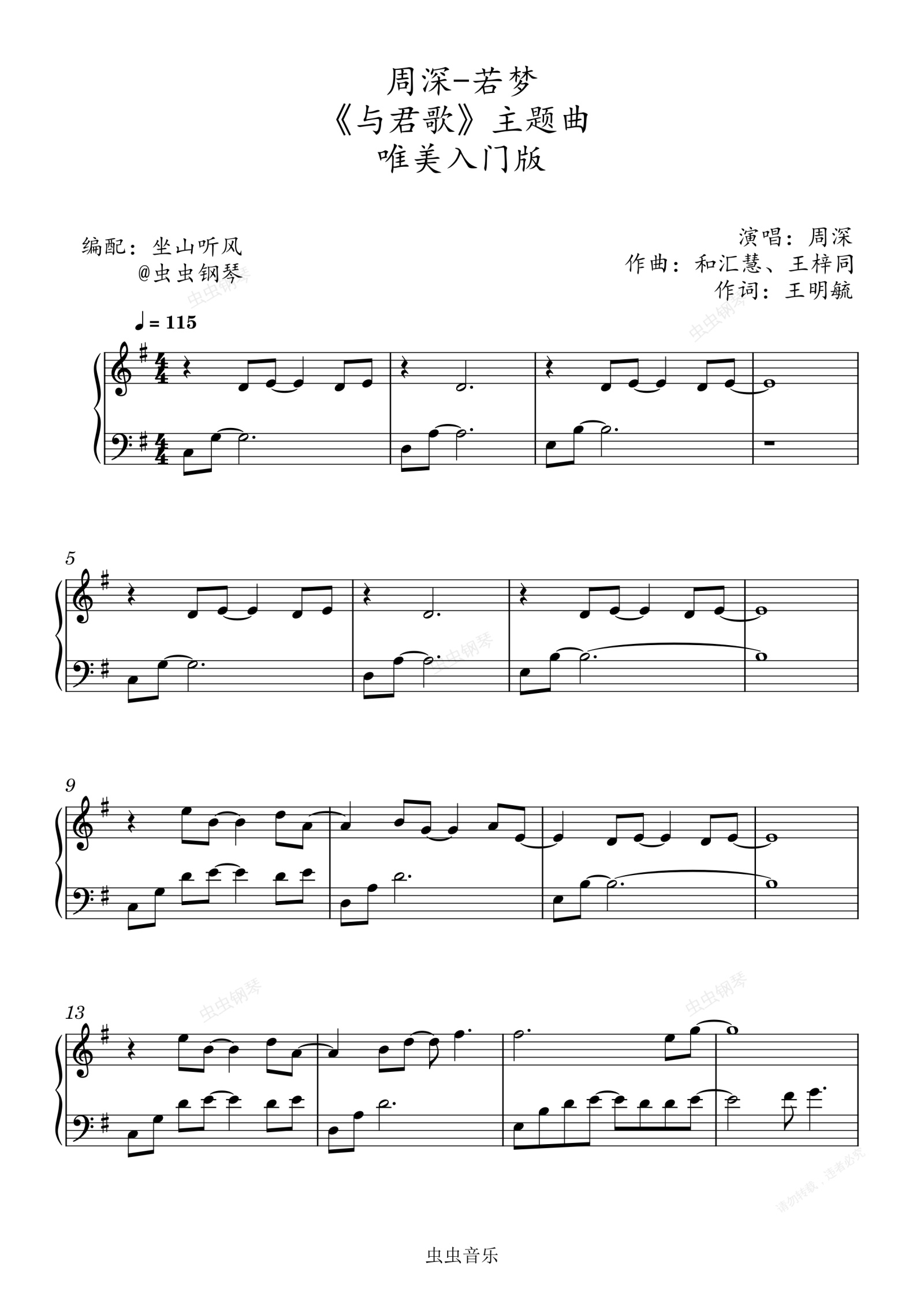 钢琴谱:周深-若梦——《与君歌》主题曲 唯美入门版