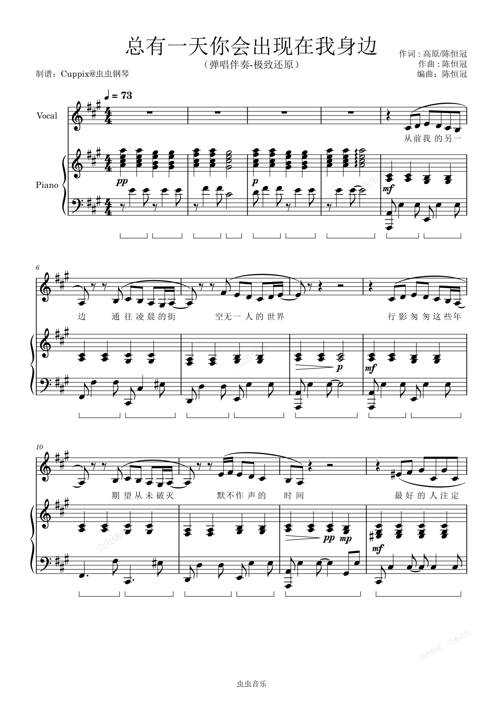 钢琴谱:《总有一天你会出现在我身边》弹唱伴奏附词-极致还原