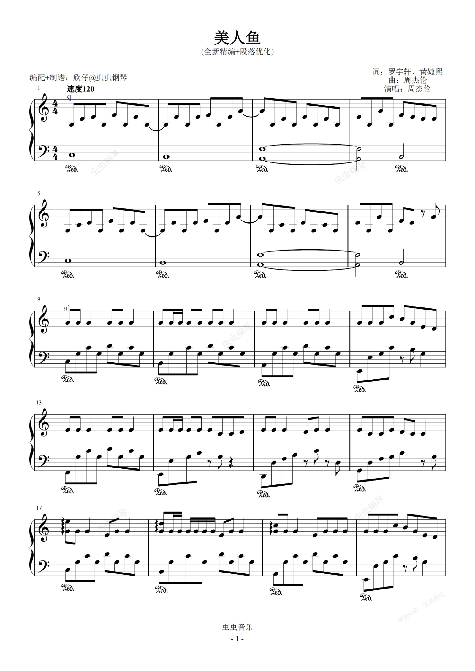 钢琴谱:周杰伦-C《美人鱼》(全新精编+段落优化)