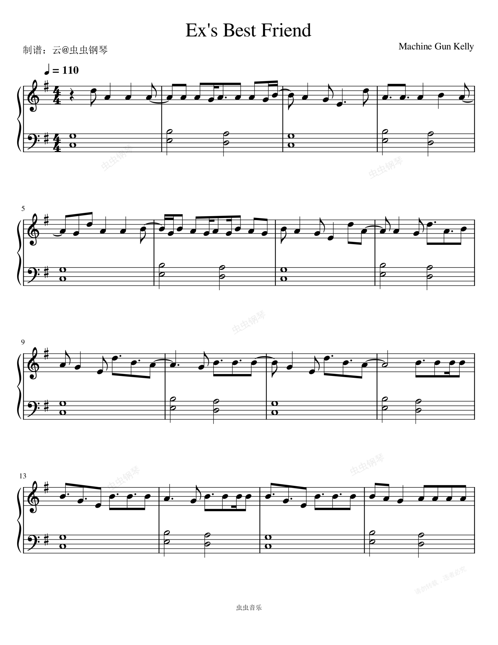 钢琴谱:my ex's best friend- Machine Gun Kelly/blackbear