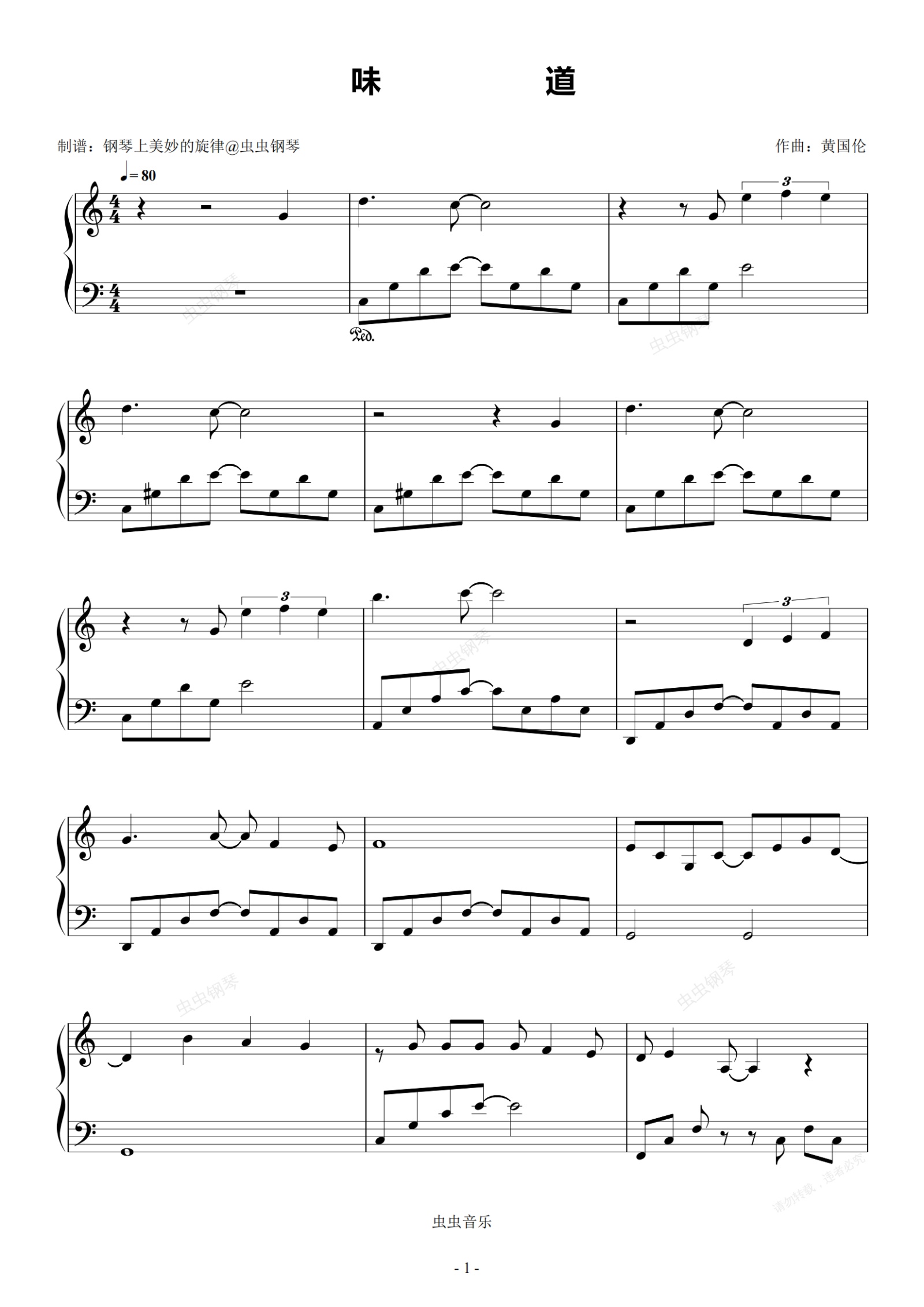 钢琴谱:味道 C调简易版本 辛晓琪 流行经典