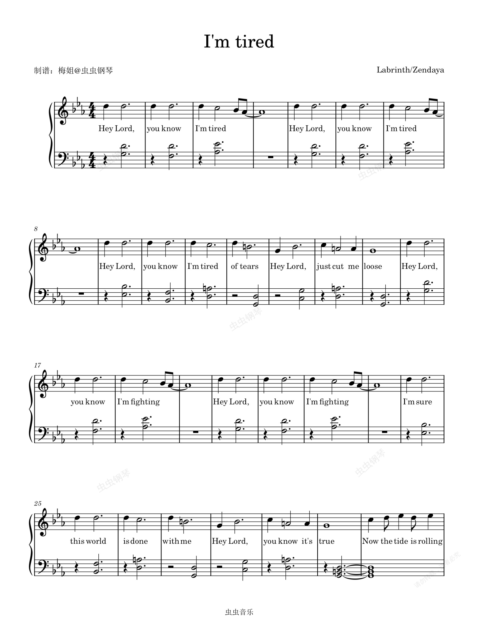钢琴谱:I'm Tired - Labrinth/Zendaya