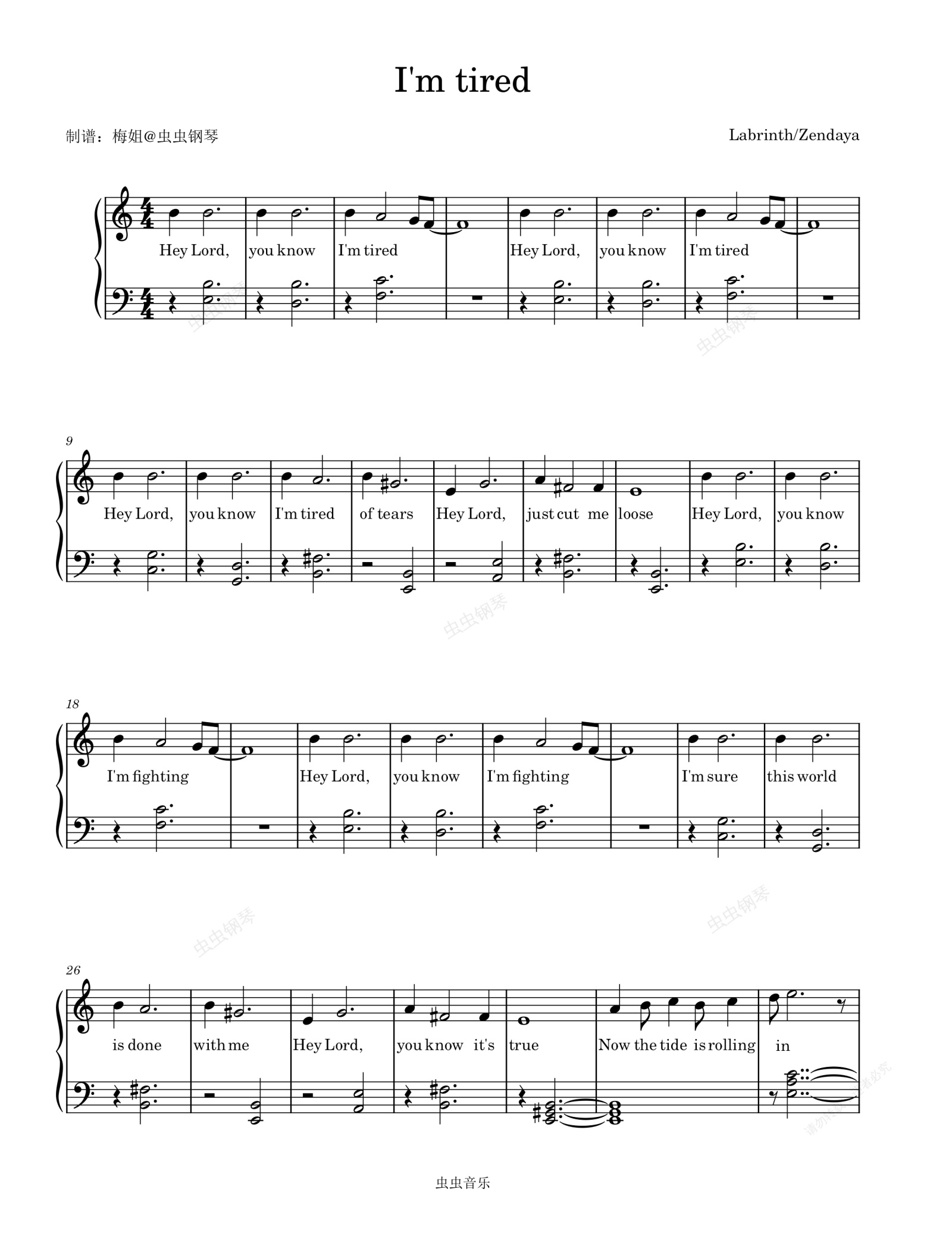 钢琴谱:I'm Tired - Labrinth/Zendaya