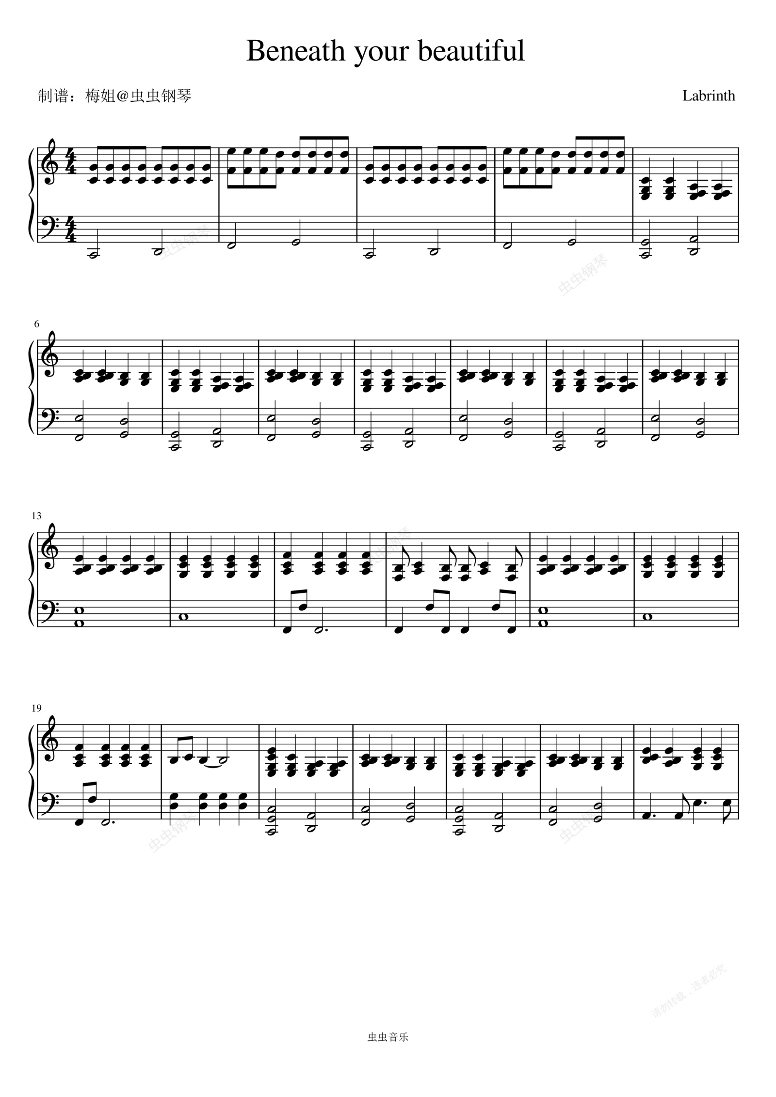 钢琴谱:Beneath Your Beautiful - Labrinth