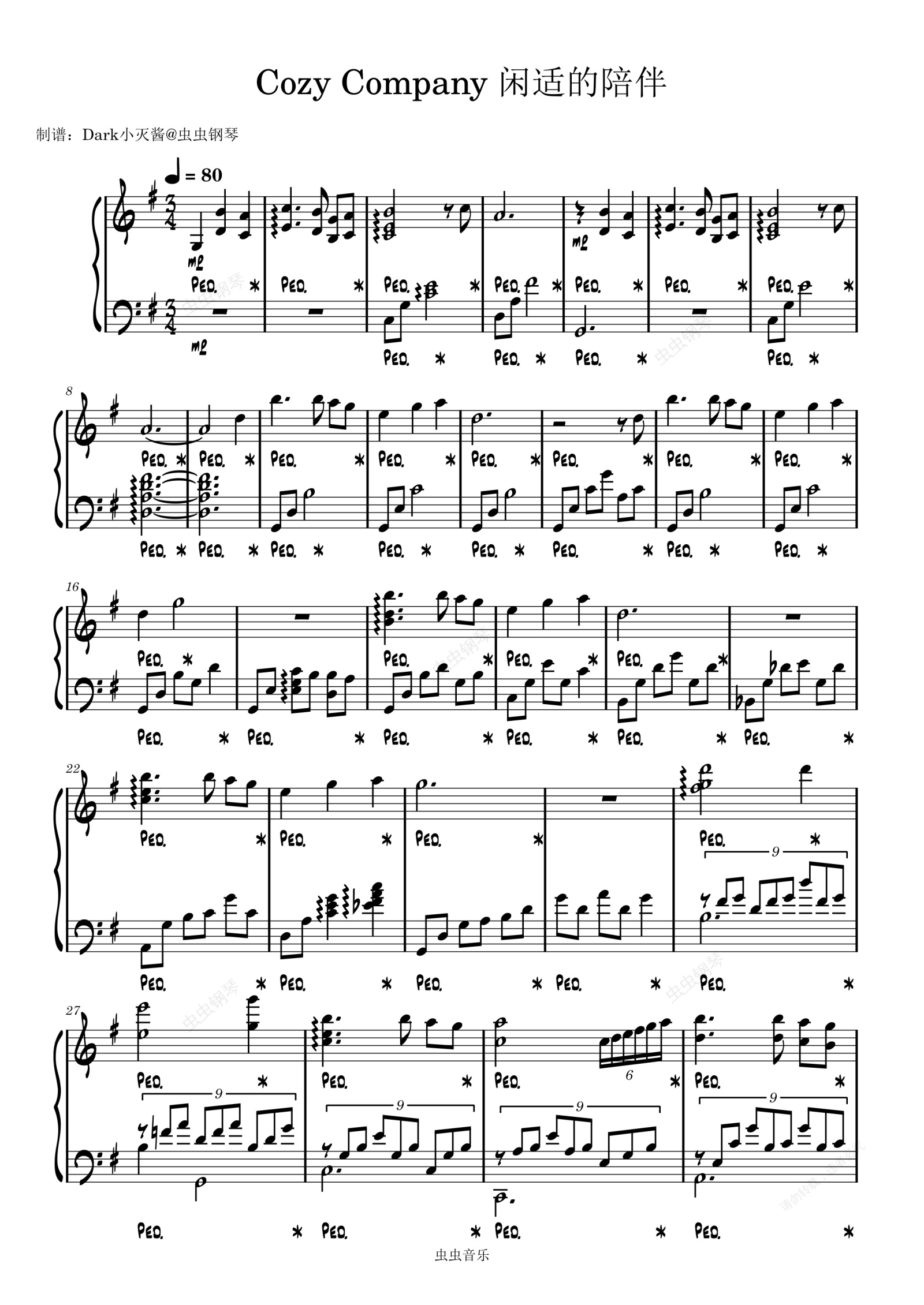 钢琴谱:【原神】Cozy Company 闲适的陪伴