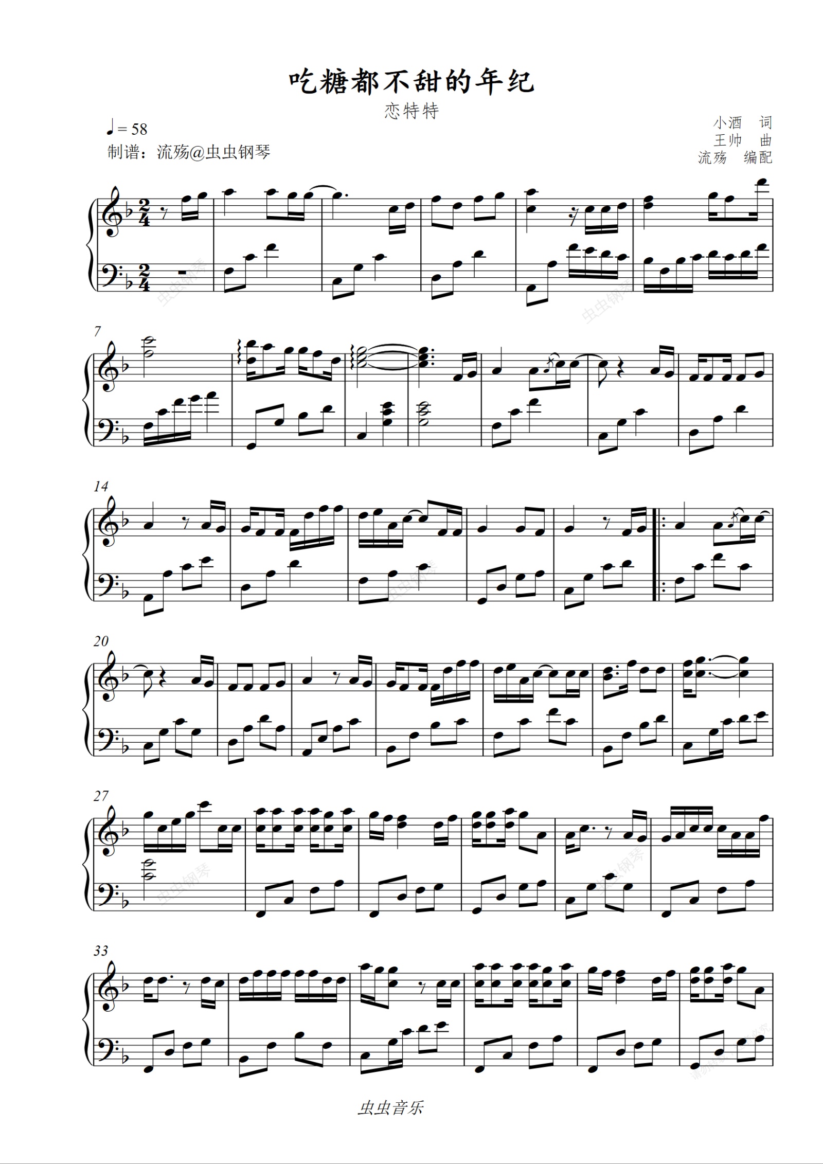 钢琴谱:吃糖都不甜的年纪(F调版)