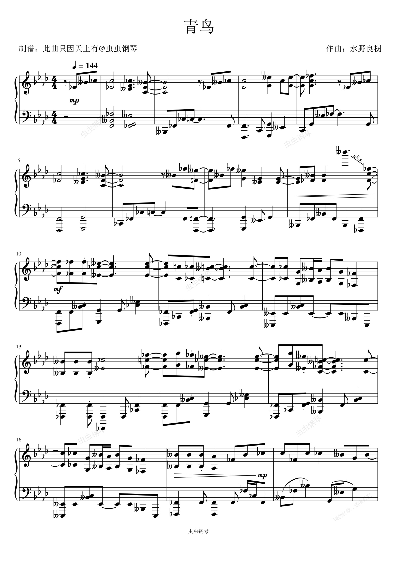 钢琴谱:火影忍者疾风传青鸟-水野良樹