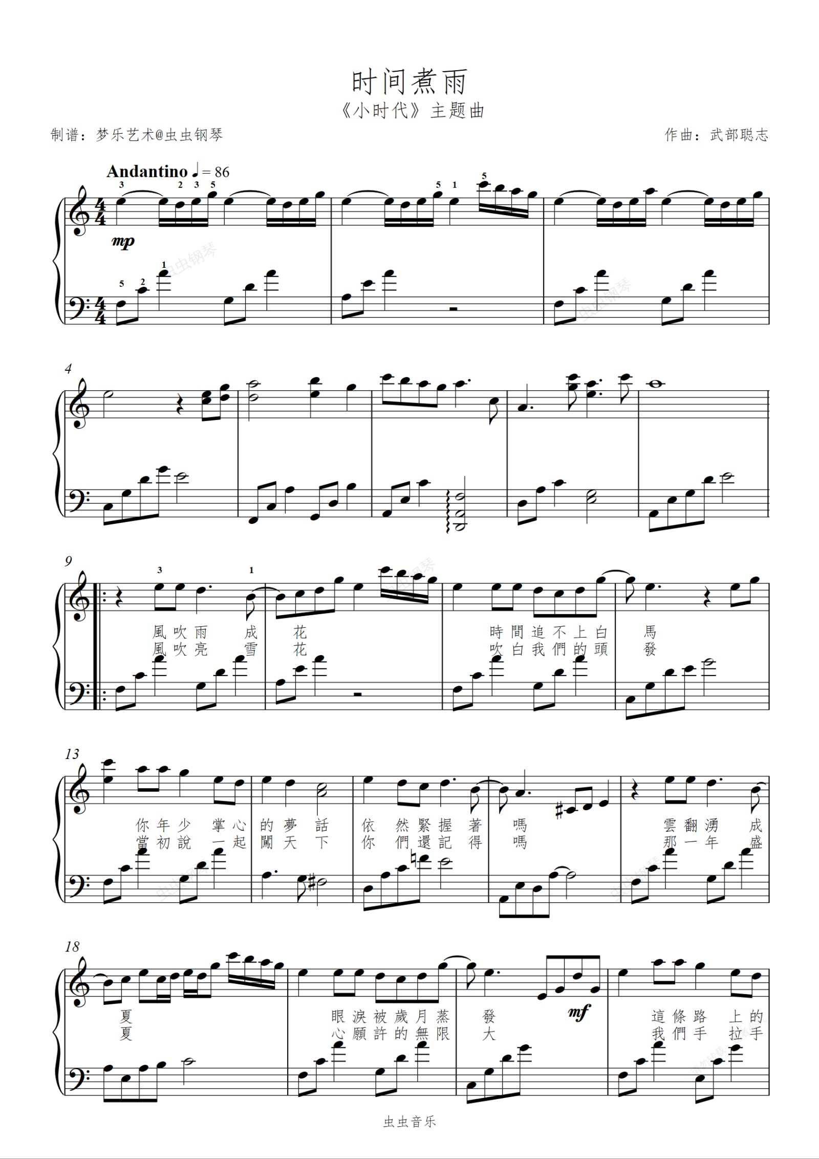 钢琴谱:时间煮雨 C调+指法+歌词 姜慕源