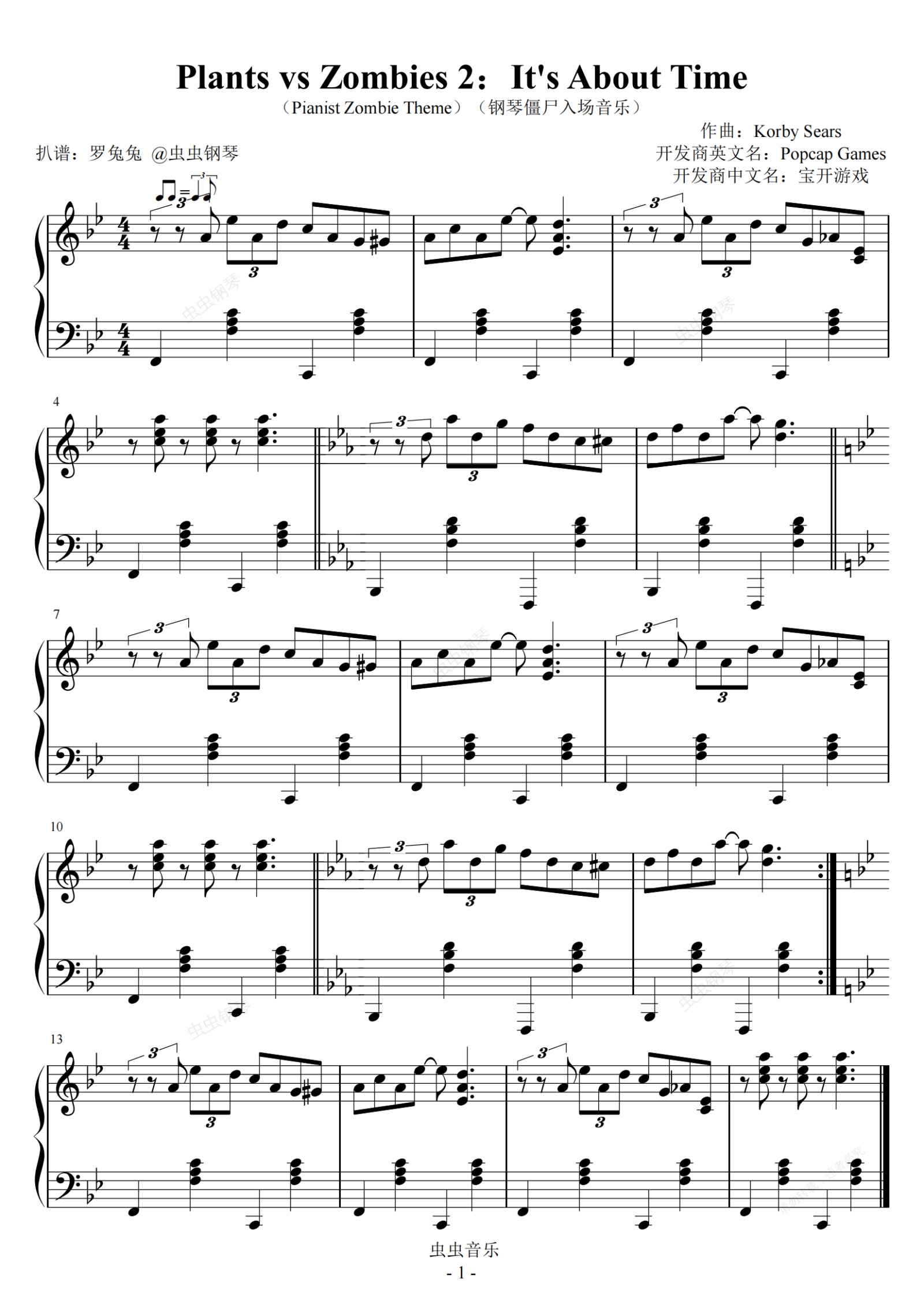 钢琴谱:Plants vs Zombies 2:It's About Time(Pianist Zombie Theme)(钢琴僵尸入场音乐)