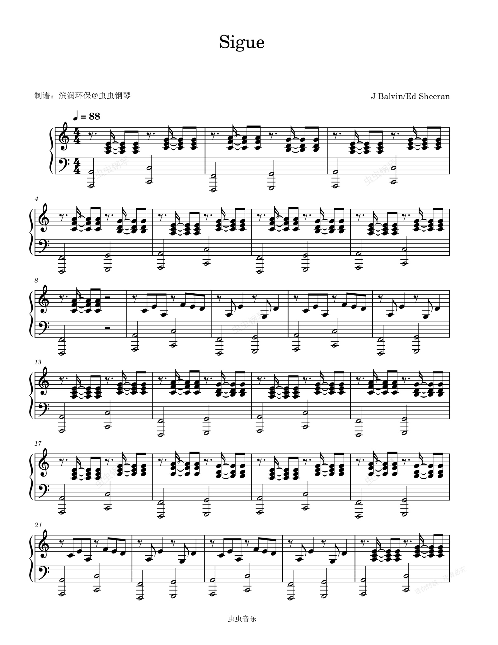 钢琴谱:Sigue (Explicit) - J Balvin/Ed Sheeran