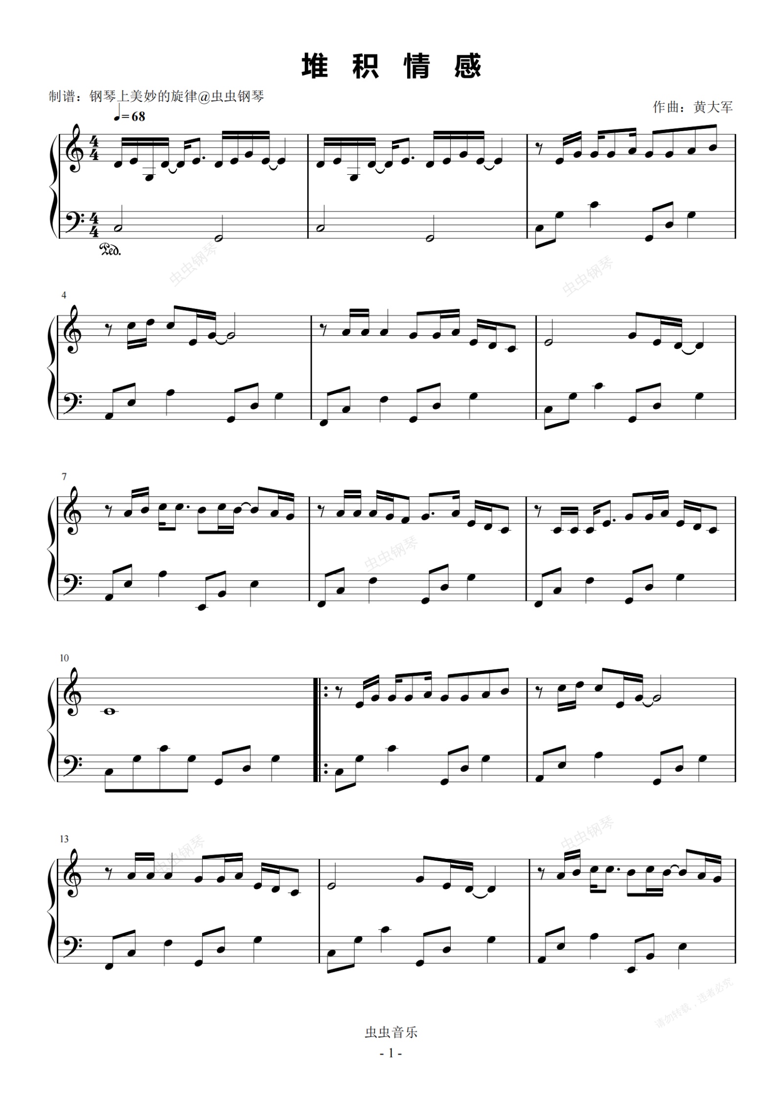 钢琴谱:堆积情感 C调简易版 黎明 流行经典
