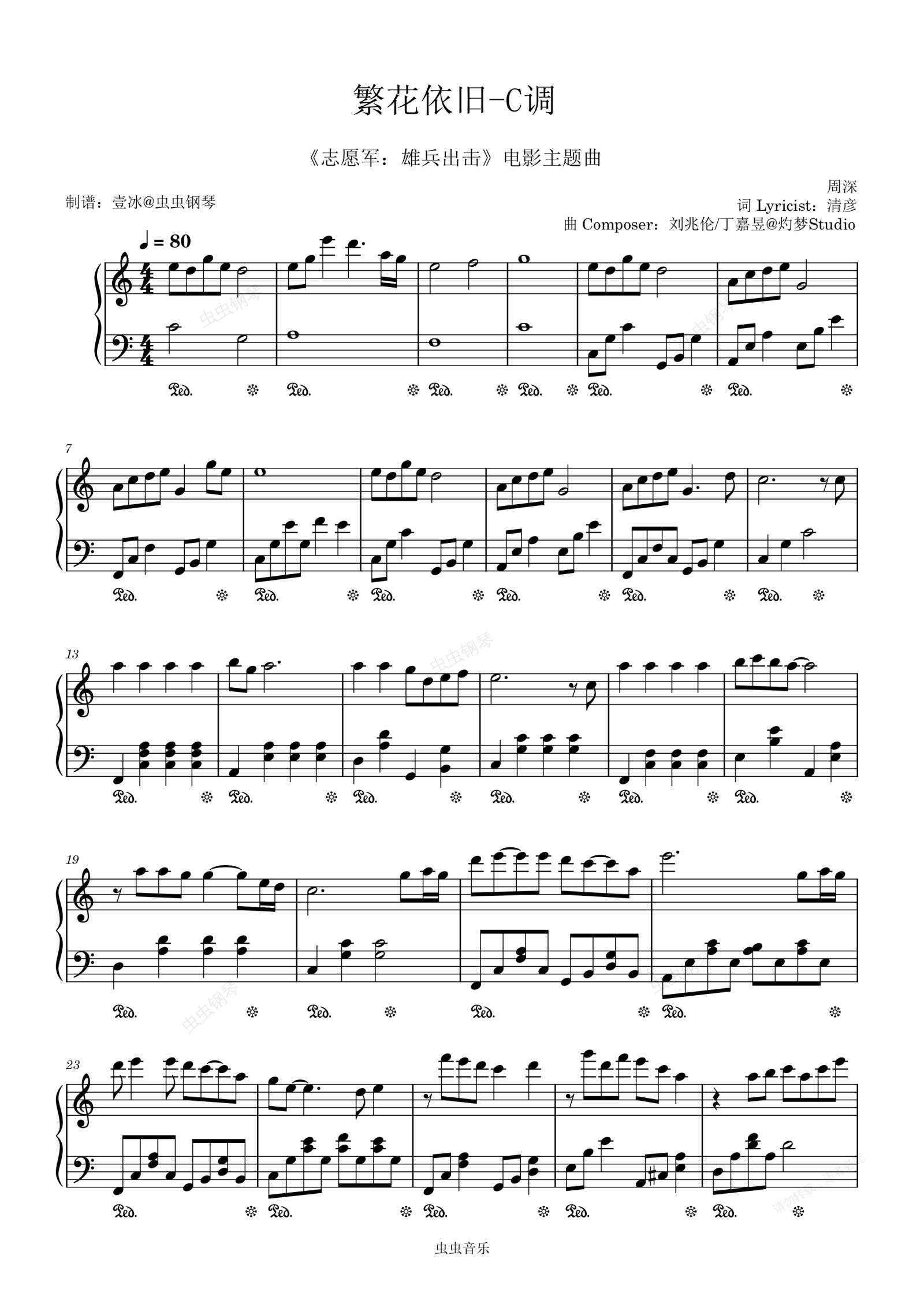 钢琴谱:繁花依旧 (《志愿军:雄兵出击》电影主题曲) - C调