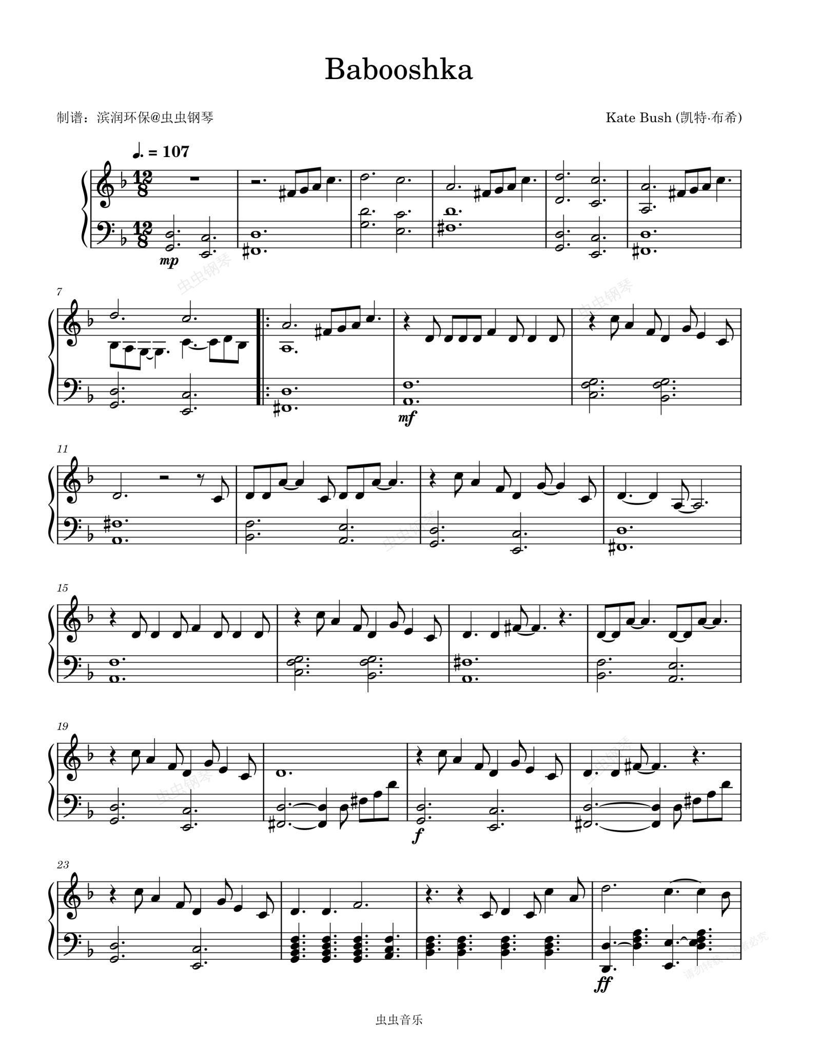 钢琴谱:Babooshka - Kate Bush (凯特·布希)