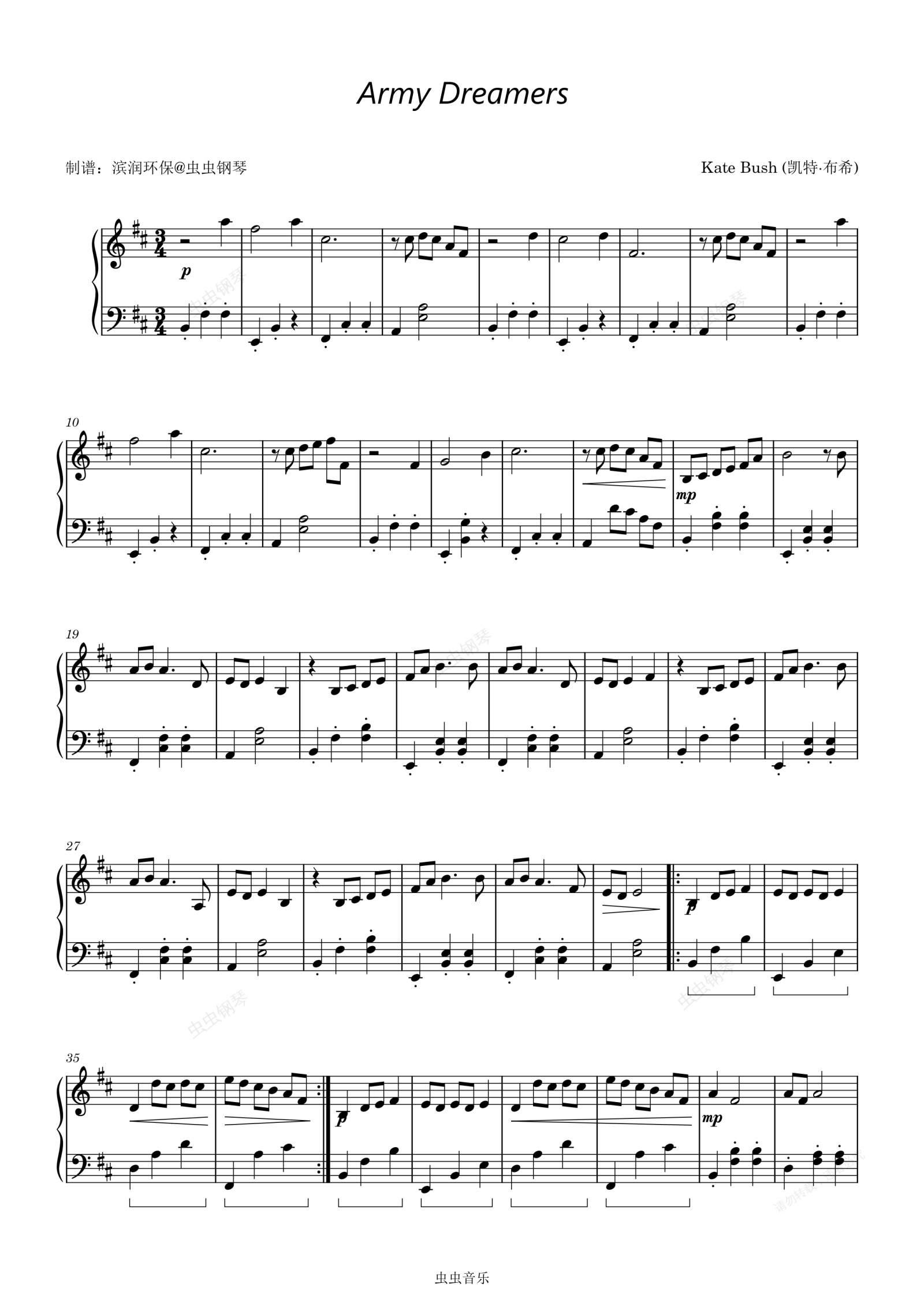 钢琴谱:Army Dreamers - Kate Bush (凯特·布希)