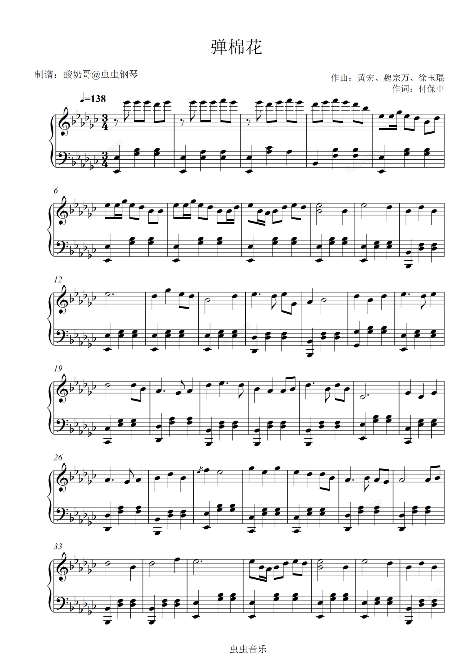 钢琴谱:弹棉花-《巧奔妙逃》电影插曲
