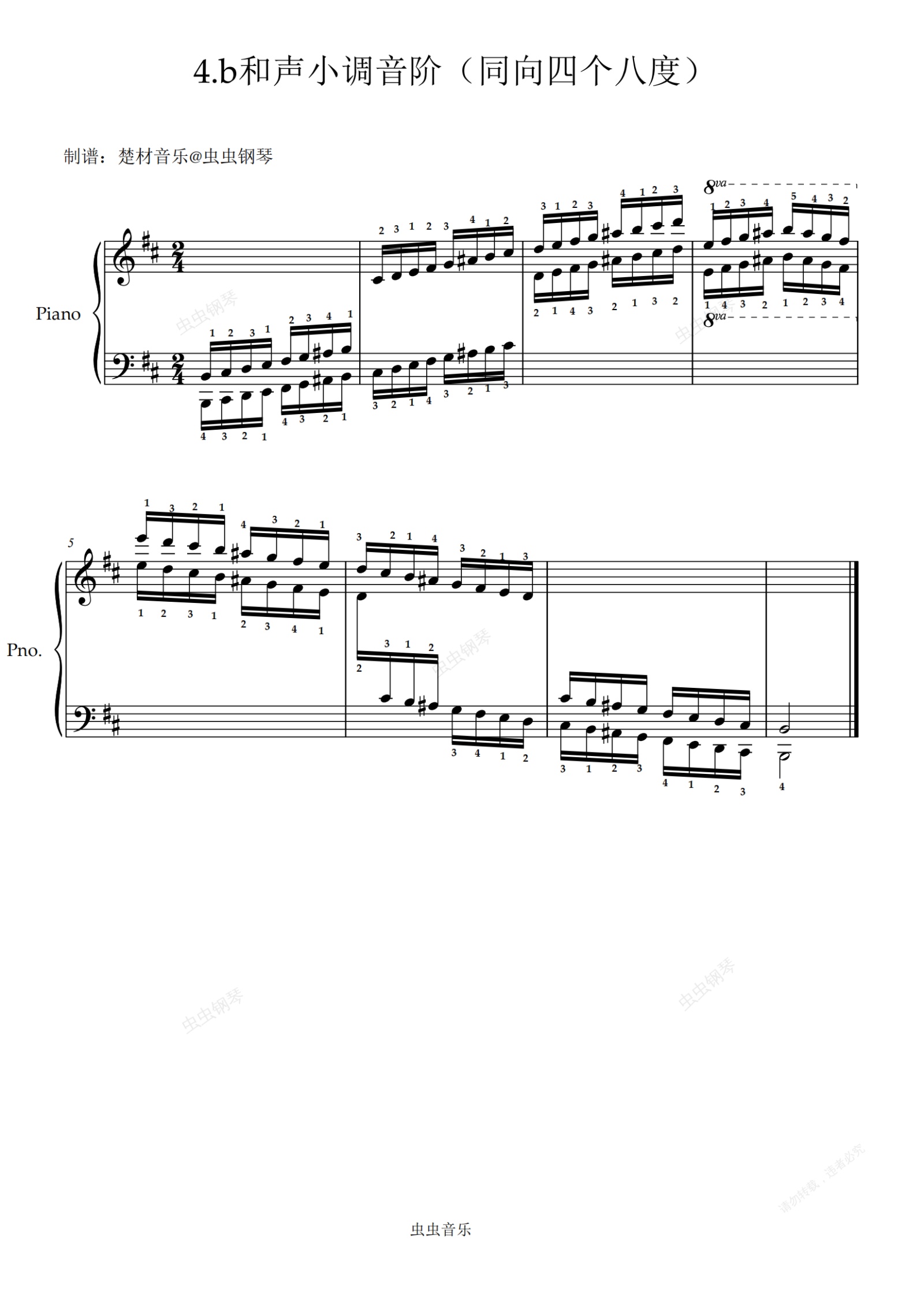 钢琴谱:4.b和声小调音阶(同向四个八度)