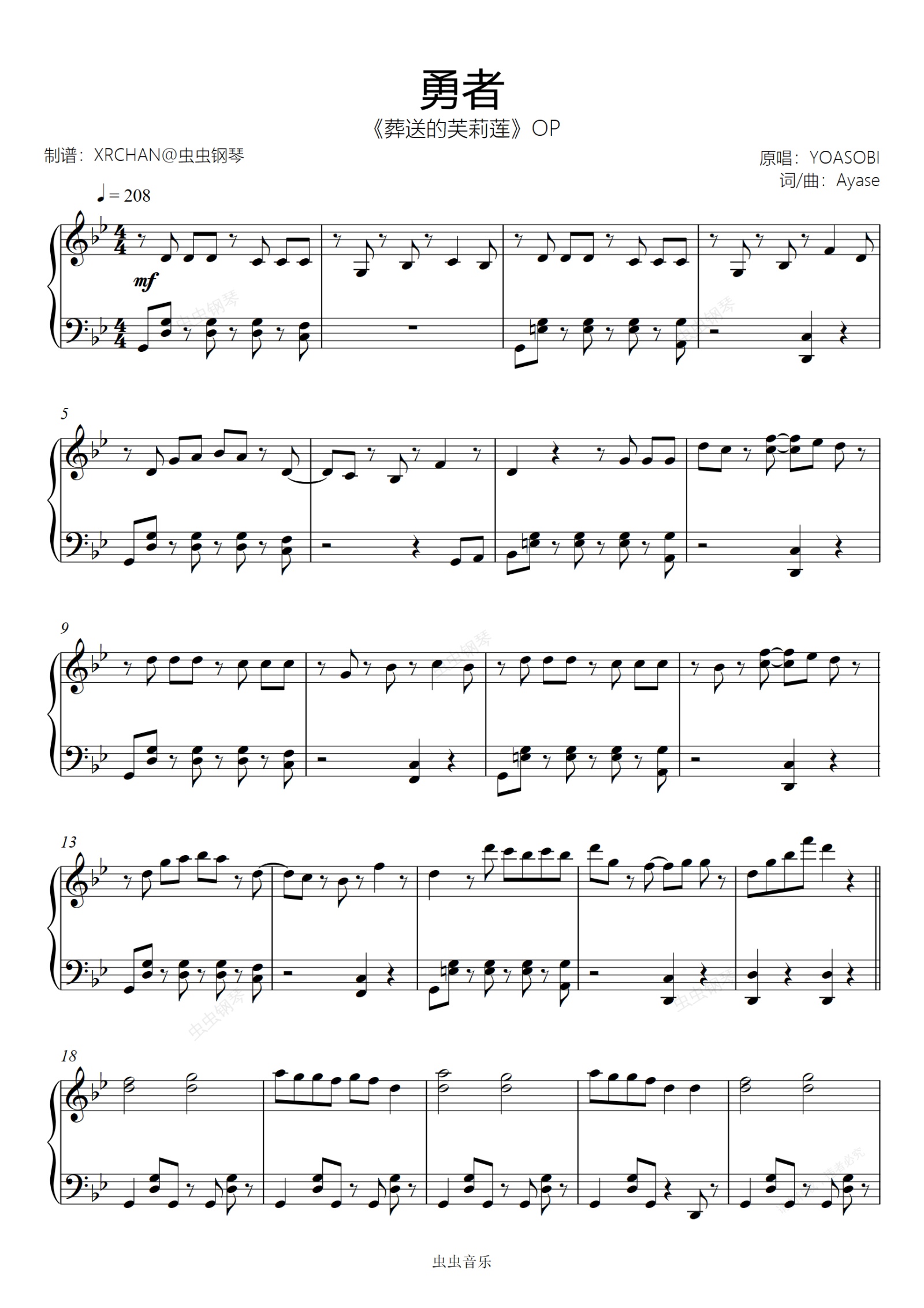 钢琴谱:《葬送的芙莉莲》OP 「勇者」 初级