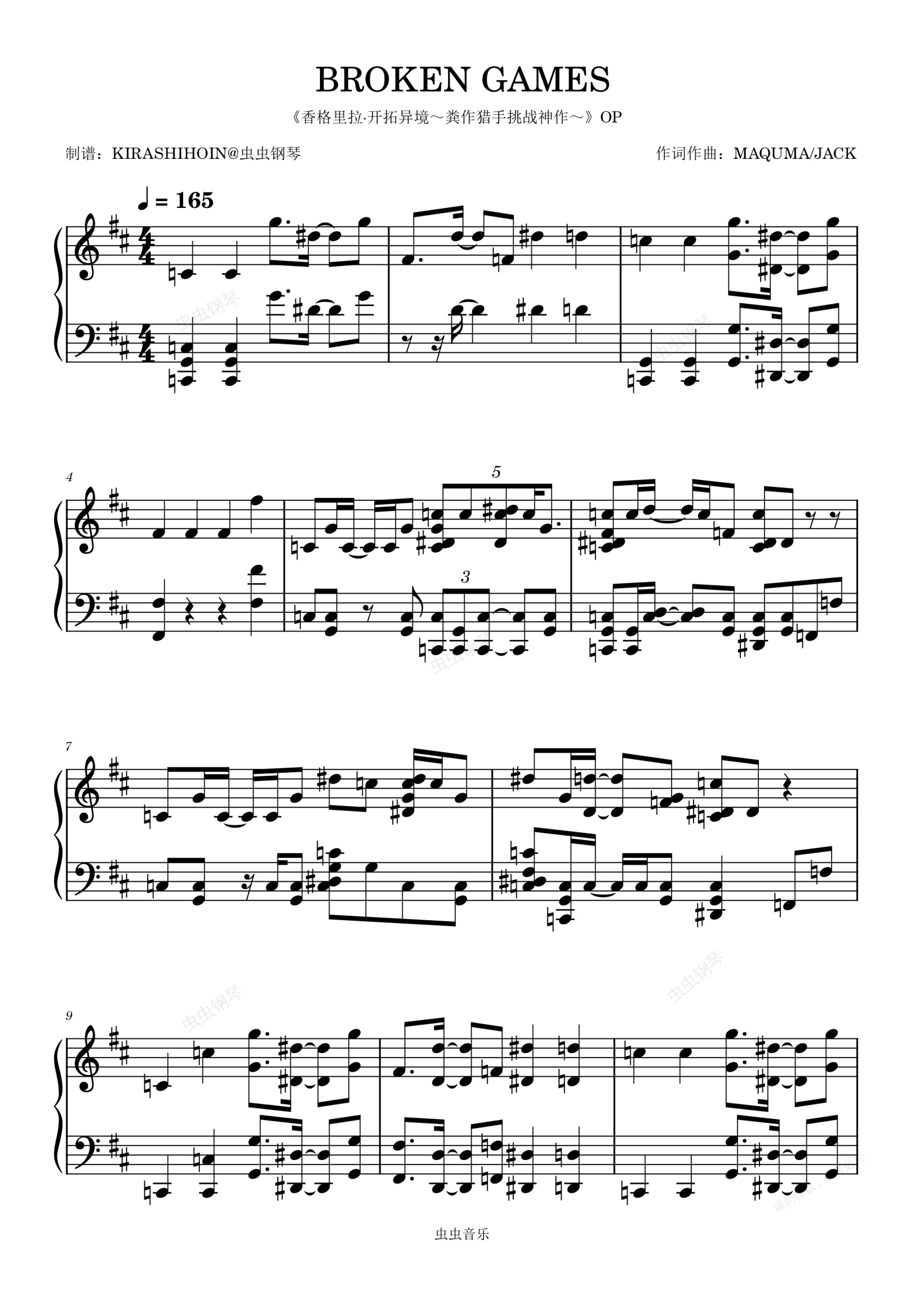 钢琴谱:BROKEN GAMES(《香格里拉·开拓异境~粪作猎手挑战神作~》OP/片头曲)- FZMZ