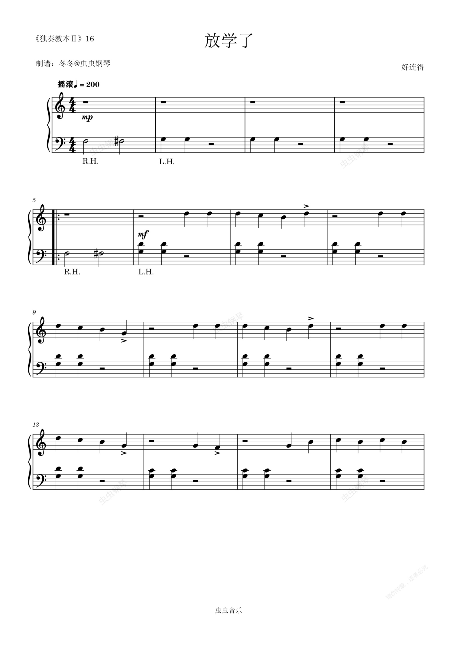 钢琴谱:放学了