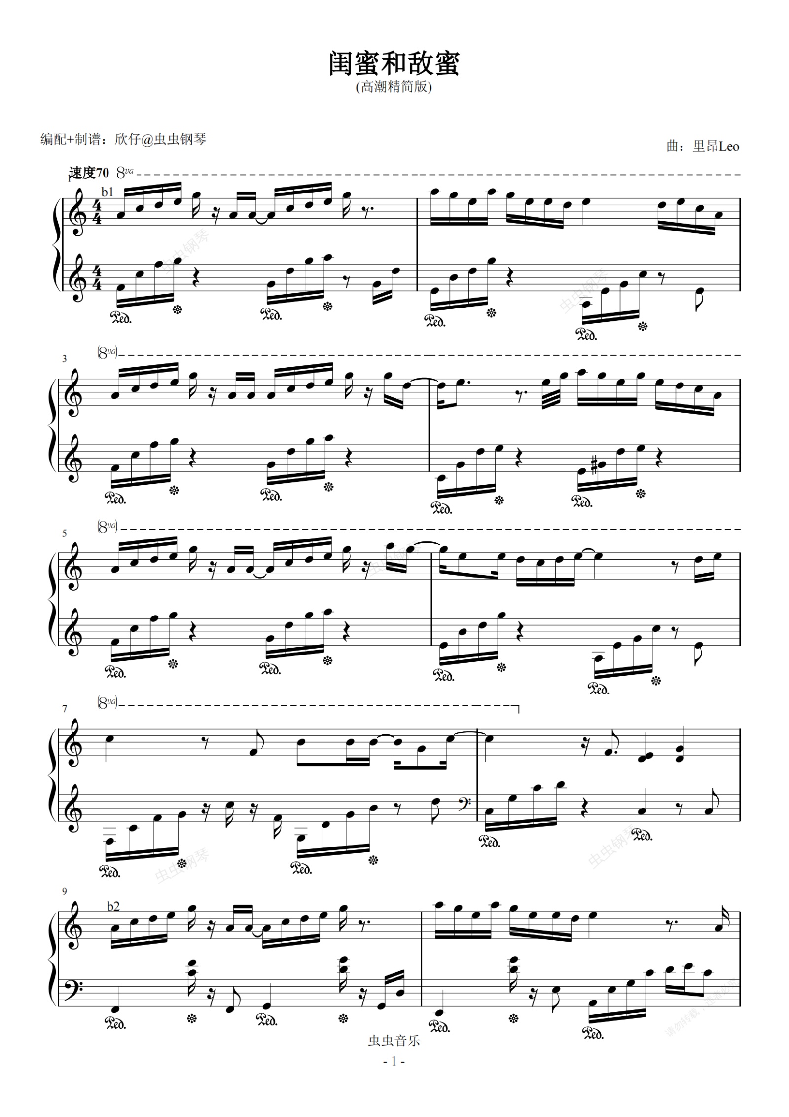 钢琴谱:C-《闺蜜和敌密》(完颜慧德/里昂Leo、副歌精简版)