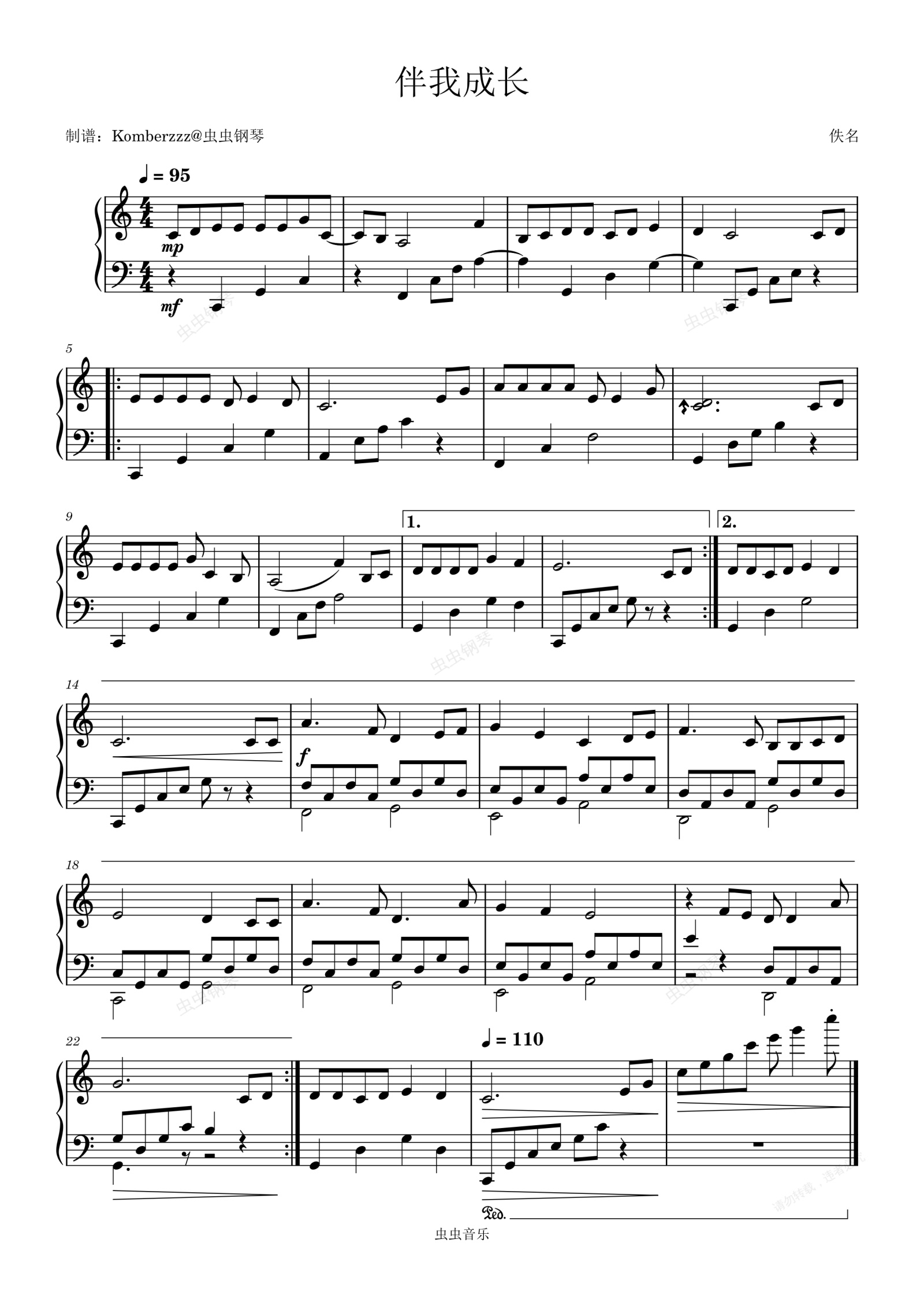 钢琴谱:伴我成长