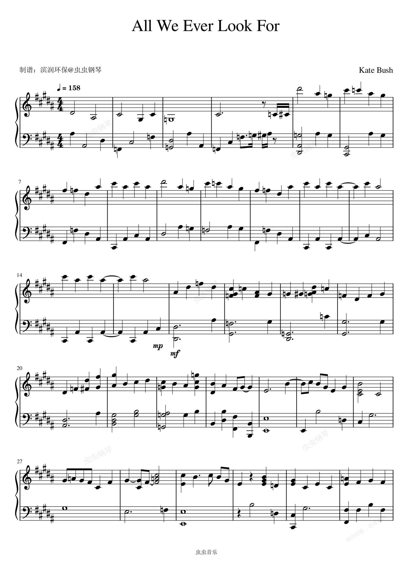 钢琴谱:All We Ever Look For - Kate Bush (凯特·布希)