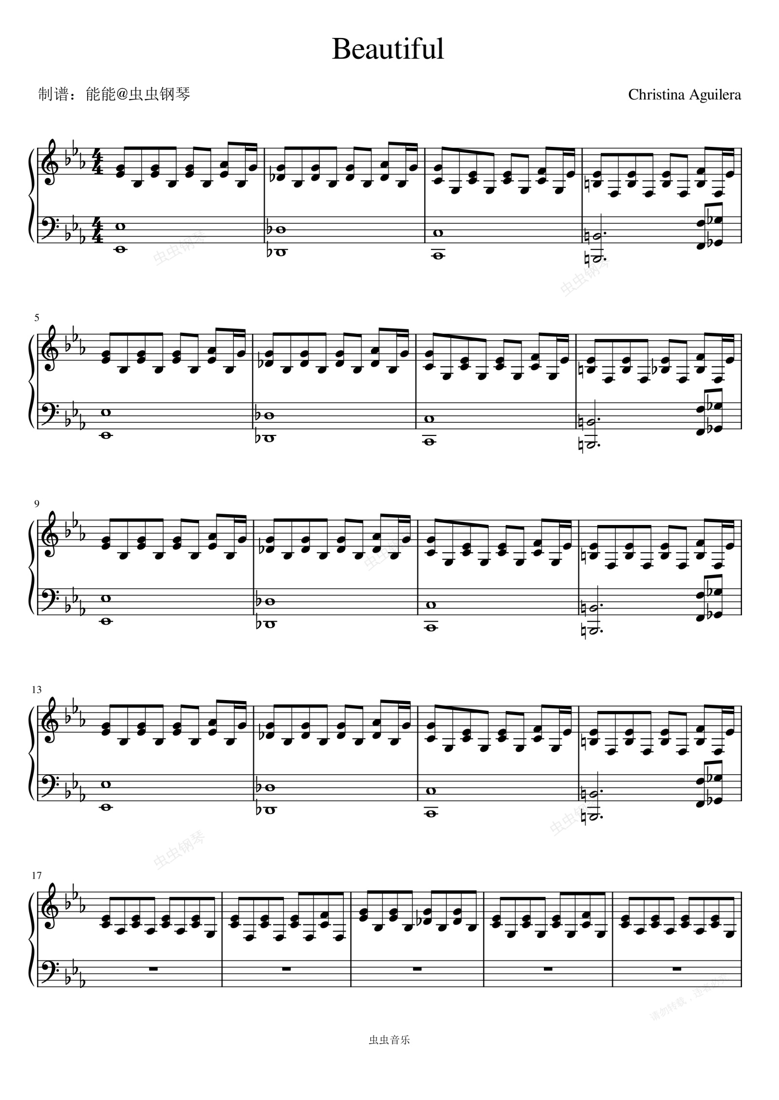 钢琴谱:Beautiful - Christina Aguilera (克里斯蒂娜·阿奎莱拉)