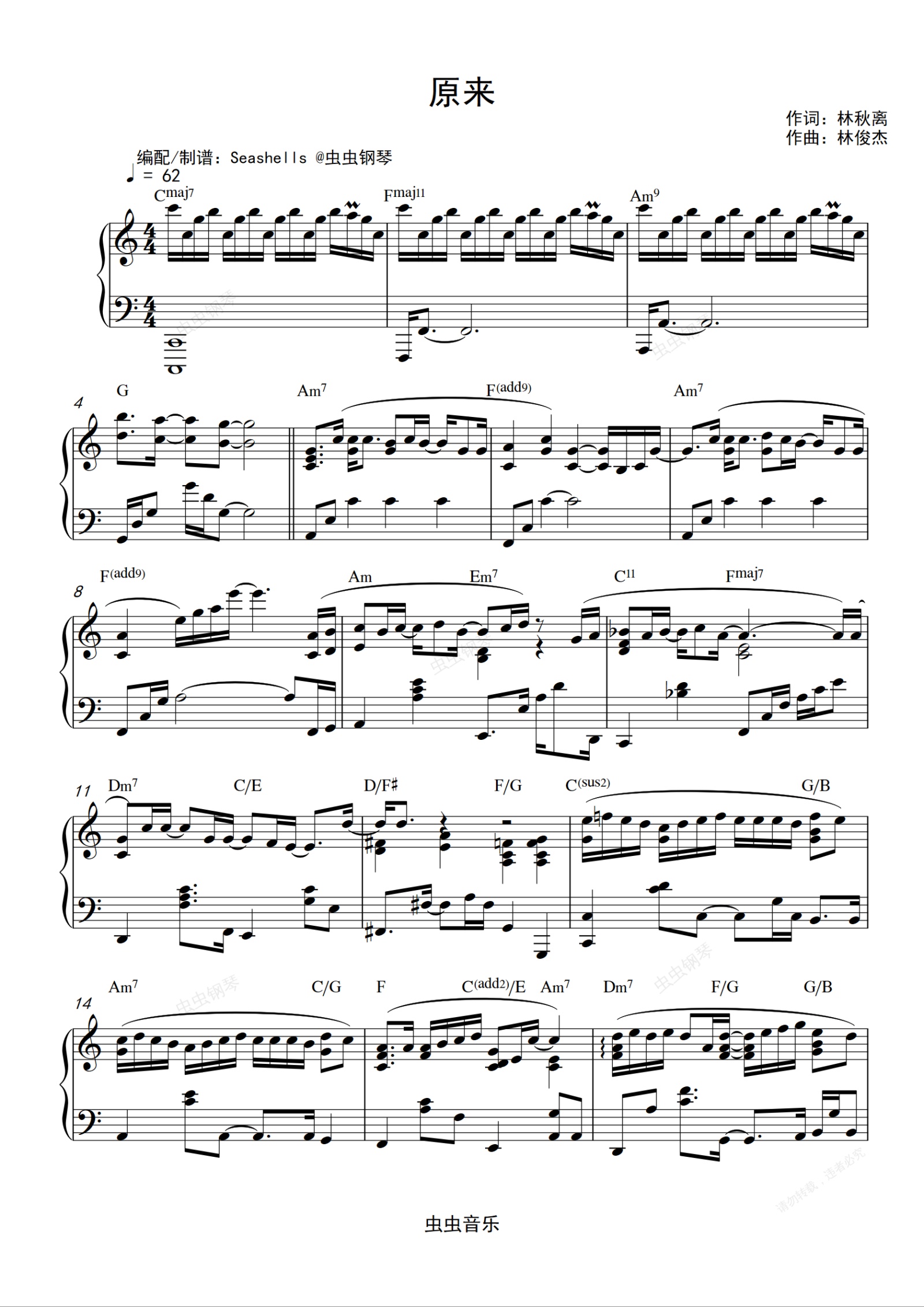 钢琴谱:林俊杰-《原来》精编钢琴独奏