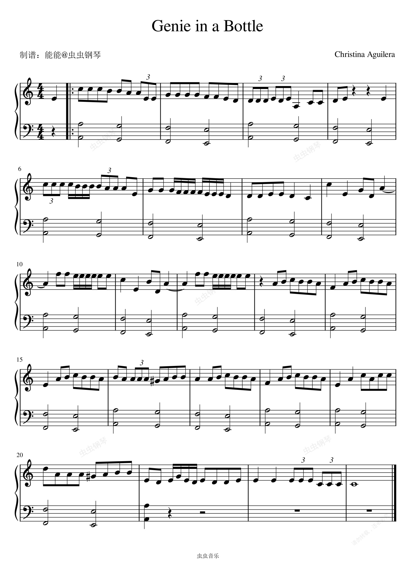钢琴谱:Genie In a Bottle - Christina Aguilera