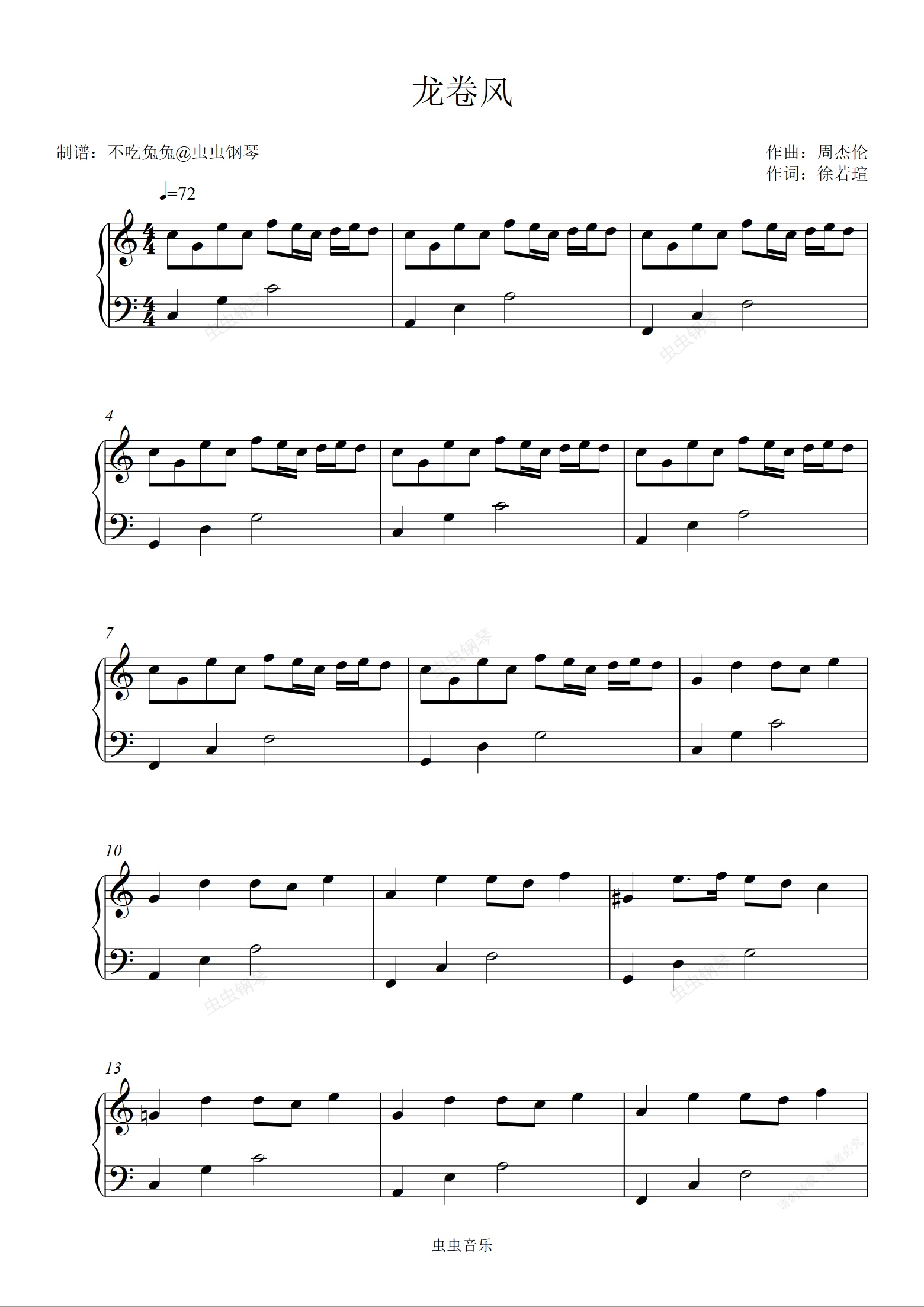 钢琴谱:龙卷风 C调初学者