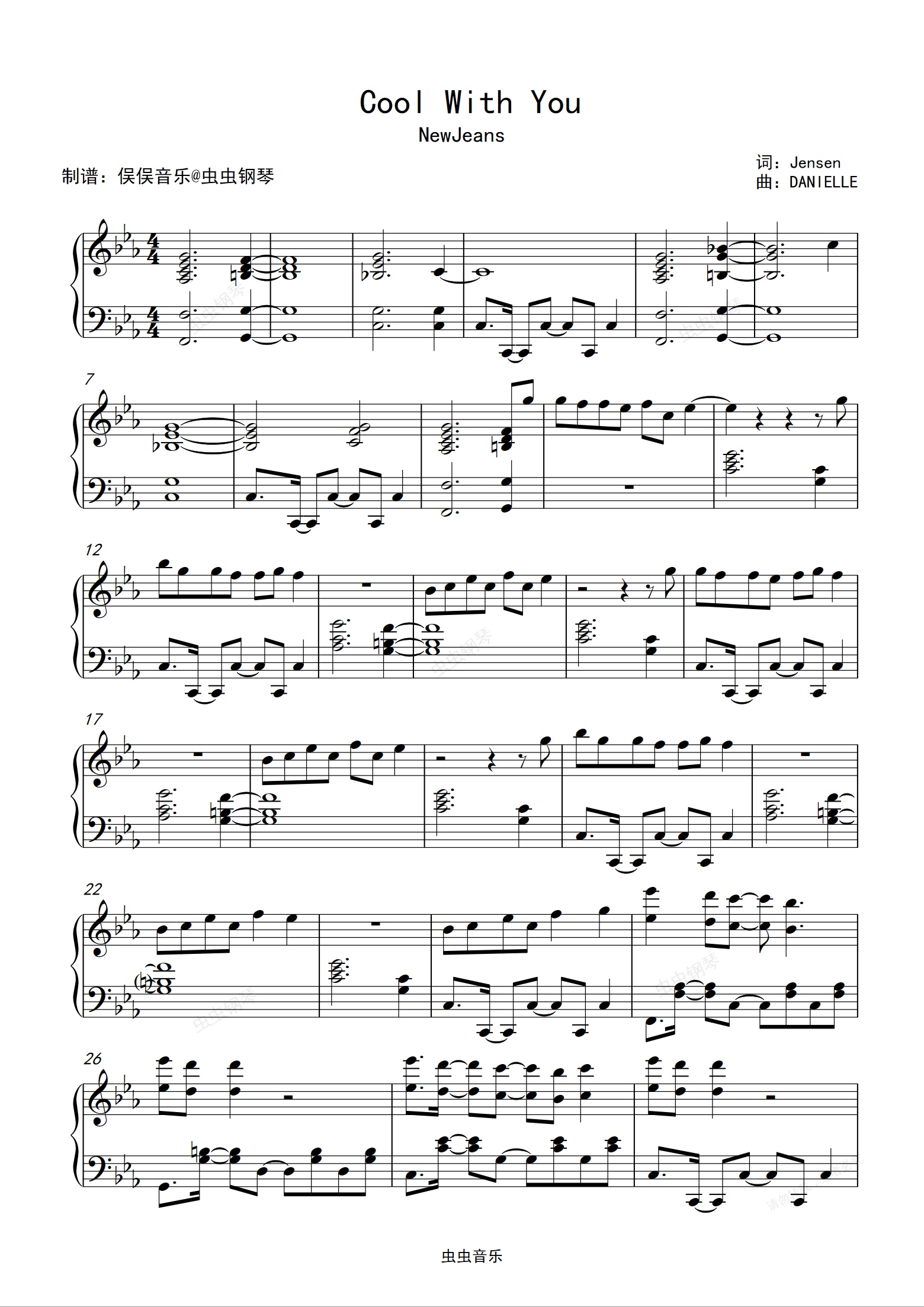 钢琴谱:NewJeans - Cool With You
