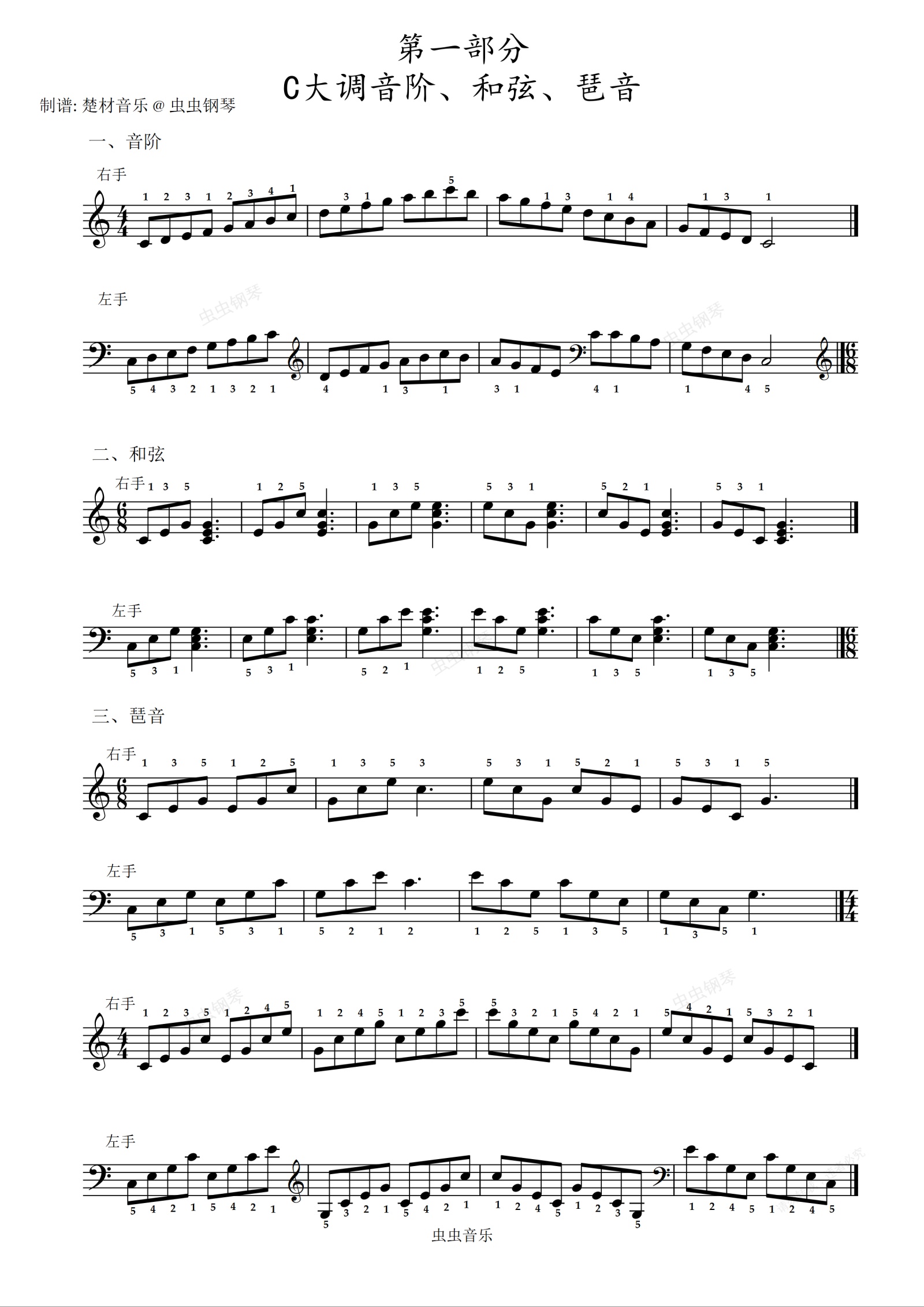 钢琴谱:C大调音阶、和弦、琶音