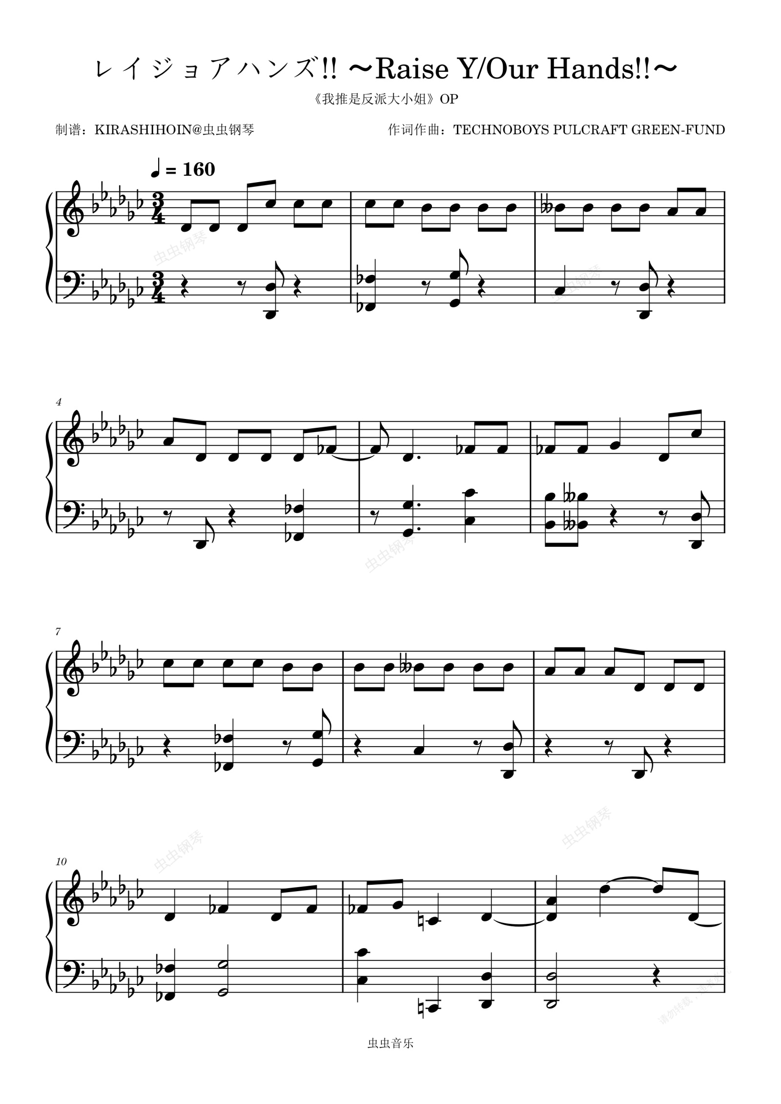 钢琴谱:レイジョアハンズ!! Raise Y Our Hands!!(《我推是反派大小姐》OP/片头曲)- 芹澤優 /奈波果林