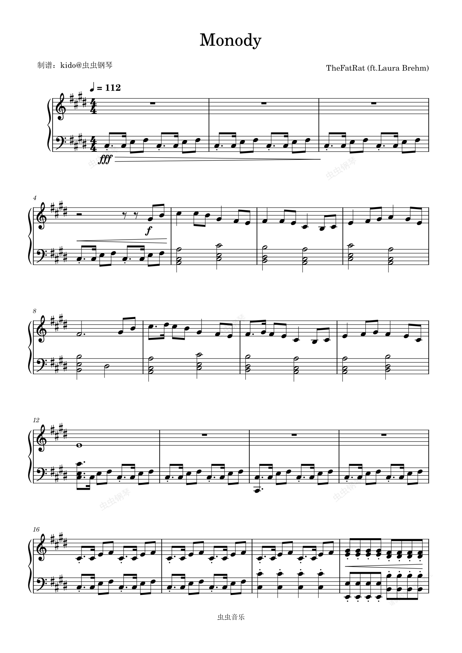 钢琴谱:Monody TheFatRat (ft.Laura Brehm)