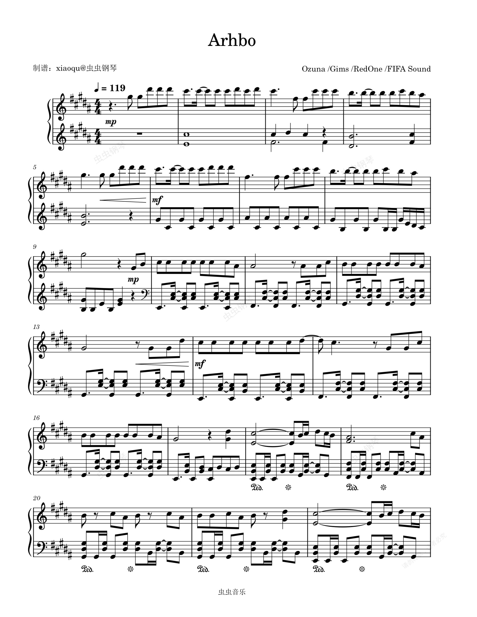 钢琴谱:Arhbo - Ozuna/Gims/RedOne/FIFA Sound