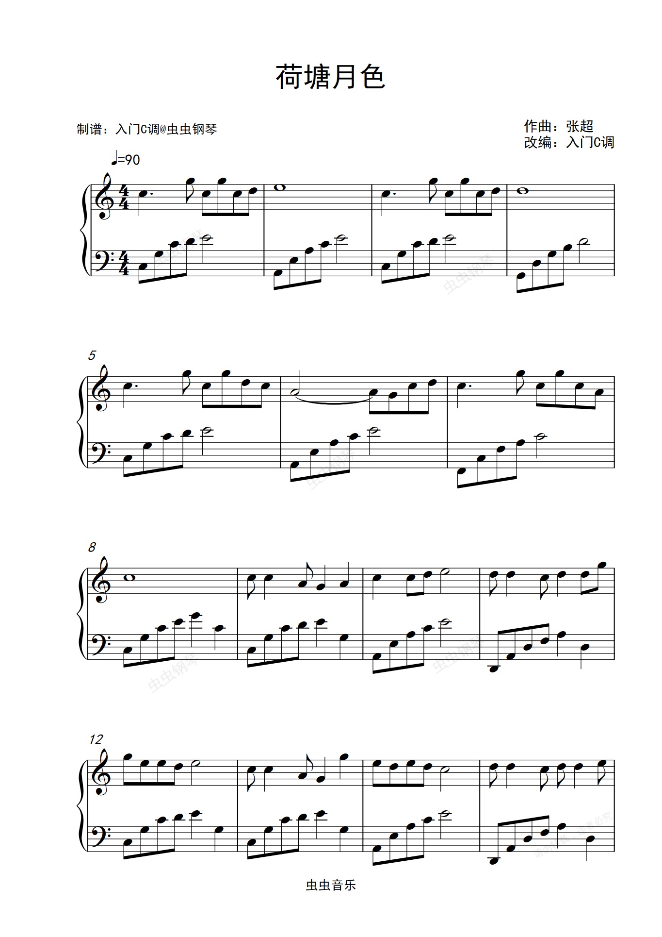 钢琴谱:【90后记忆】凤凰传奇《荷塘月色》入门C调抒情简单版