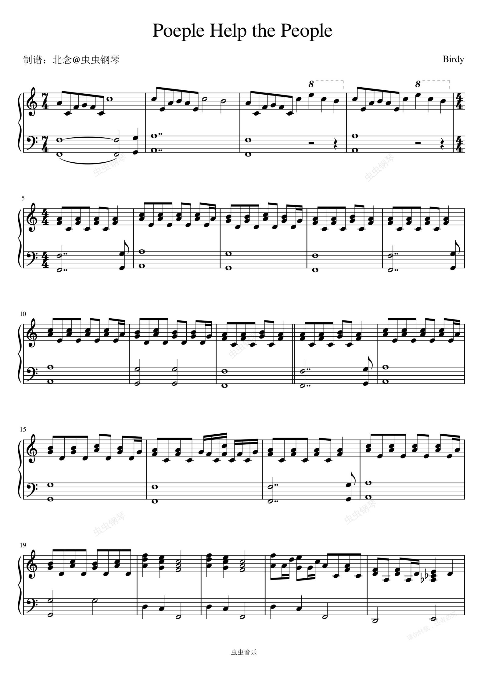 钢琴谱:People Help the People - Birdy