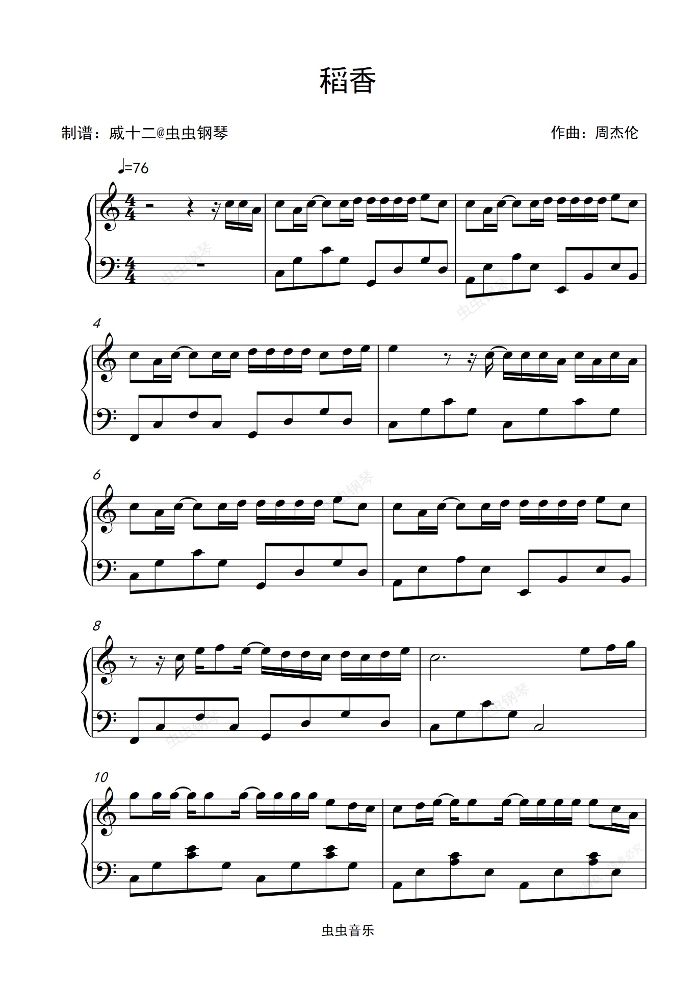 钢琴谱:稻香-C调简单版