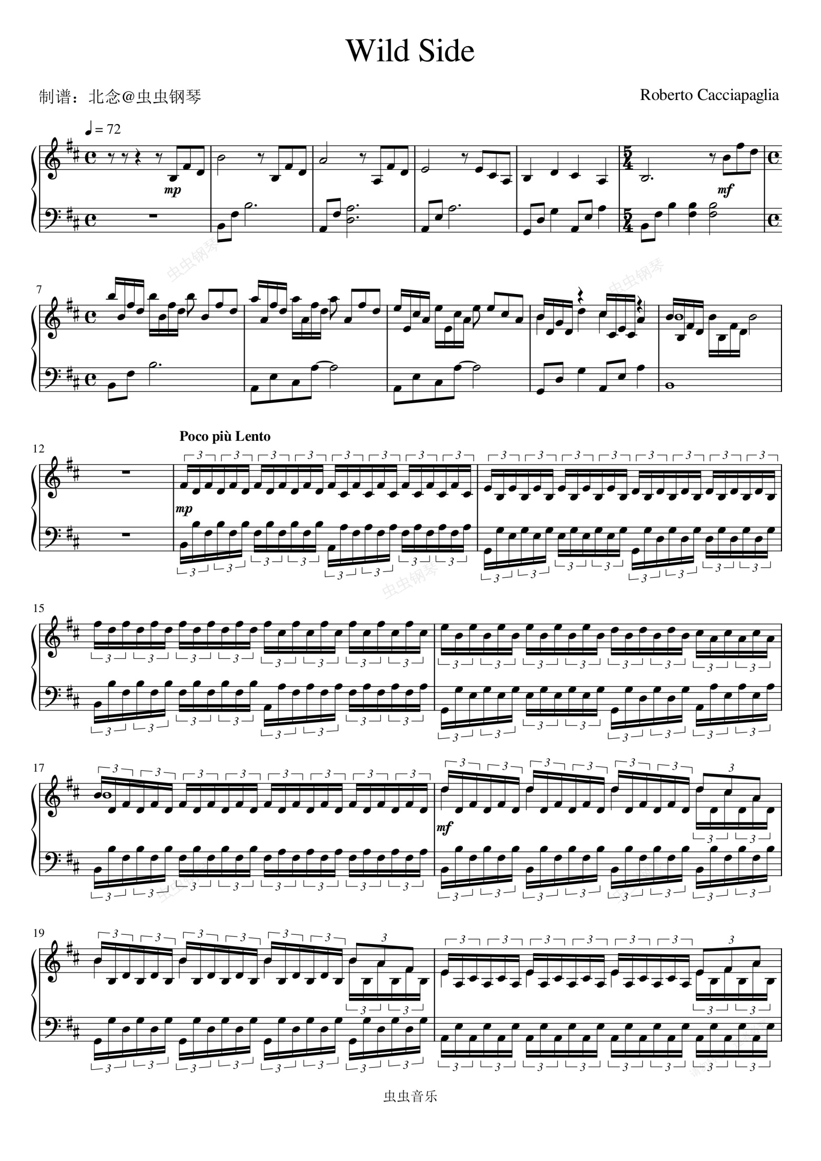 钢琴谱:Wild Side - Roberto Cacciapaglia