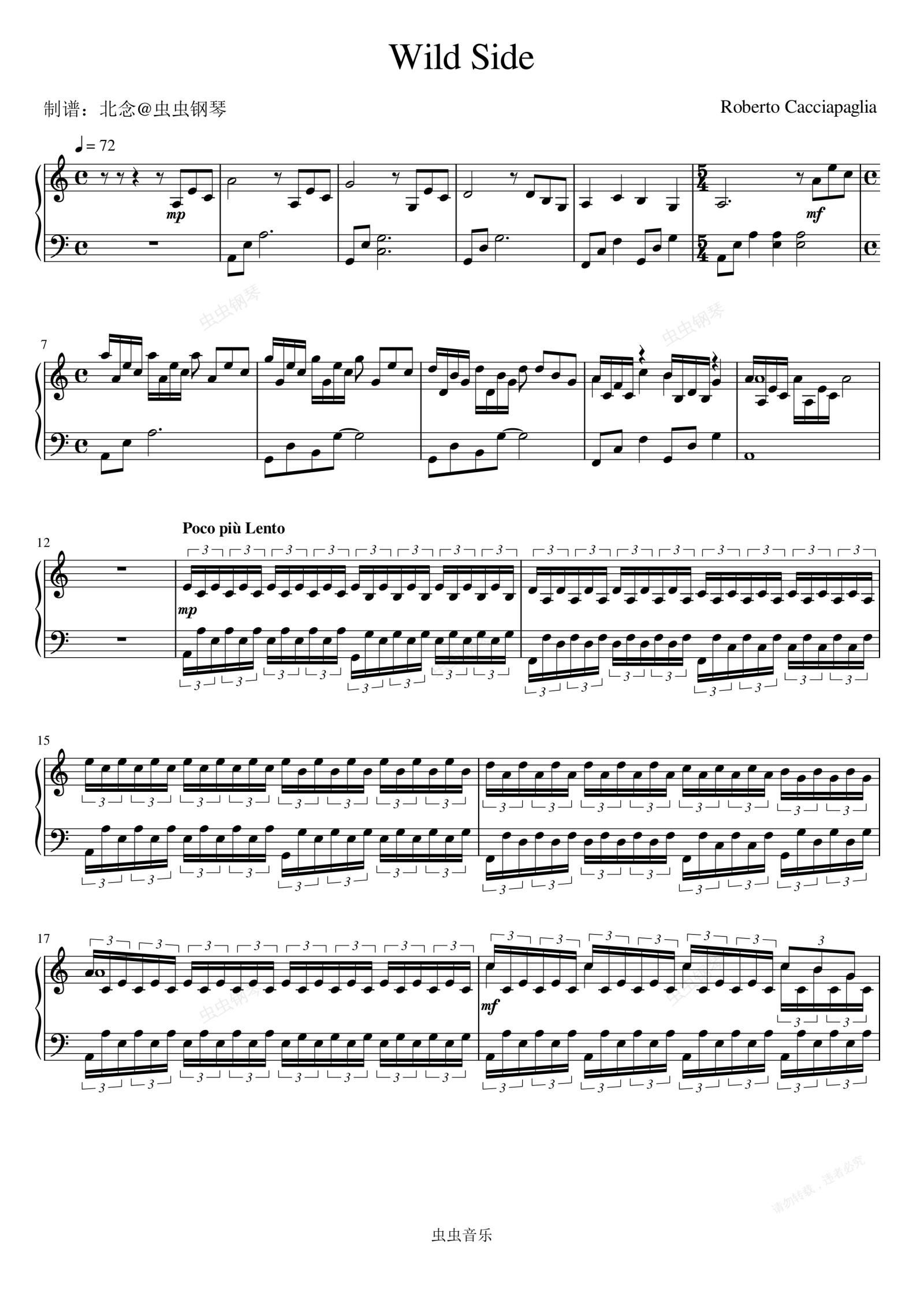 钢琴谱:Wild Side - Roberto Cacciapaglia