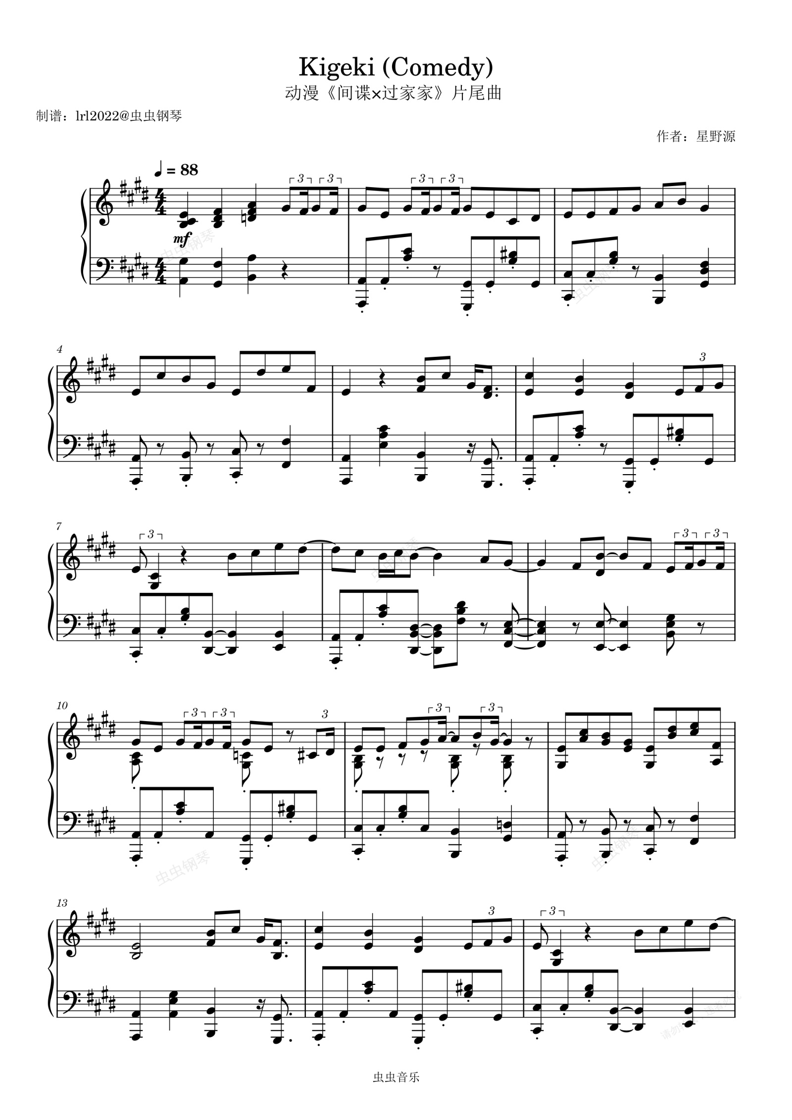 钢琴谱:Kigeki (Comedy) - 动漫《间谍×过家家》片尾曲 Spy x Family ED - 钢琴独奏