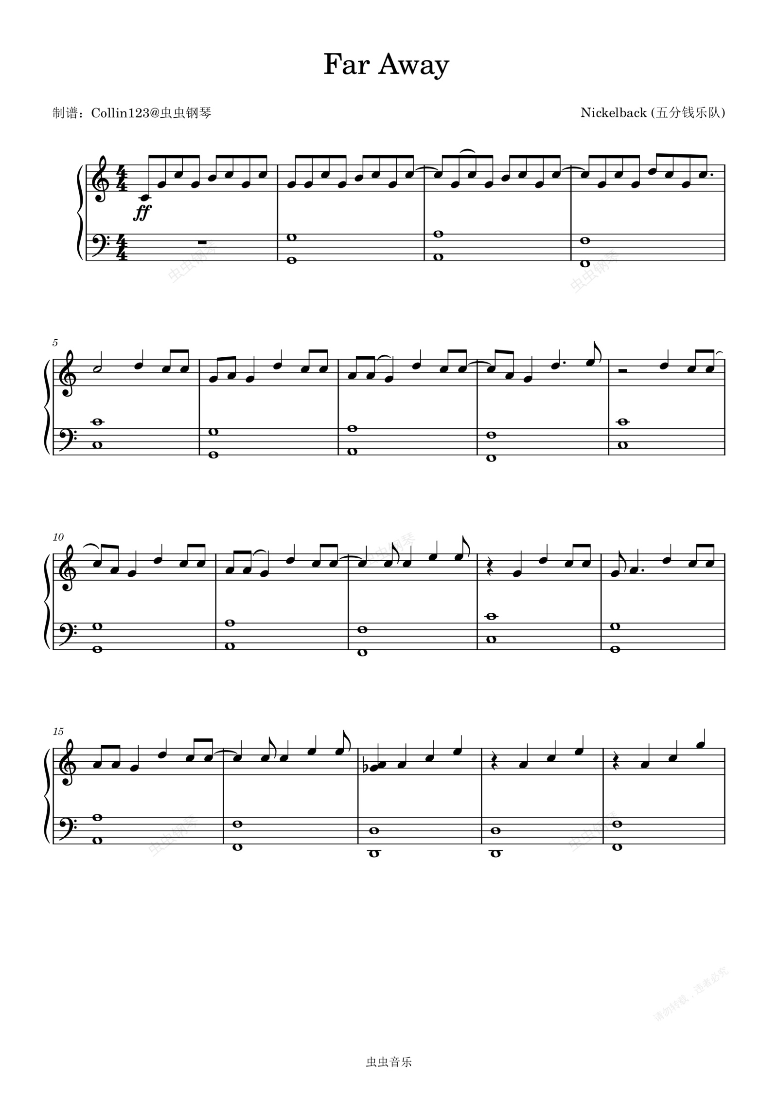 钢琴谱:Far Away - Nickelback (五分钱乐队)