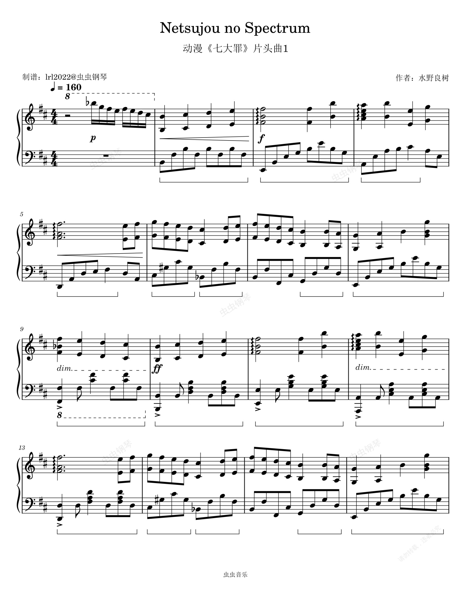 钢琴谱:Netsujou no Spectrum - Nanatsu no Taizai OP 1 (Seven Deadly Sins) - 动漫《七大罪》片头曲1 - 钢琴独奏